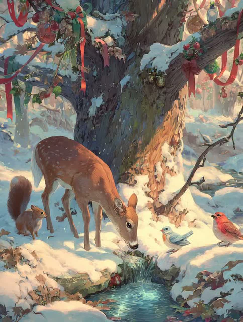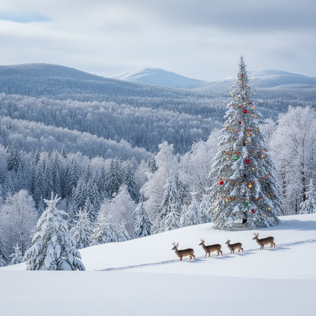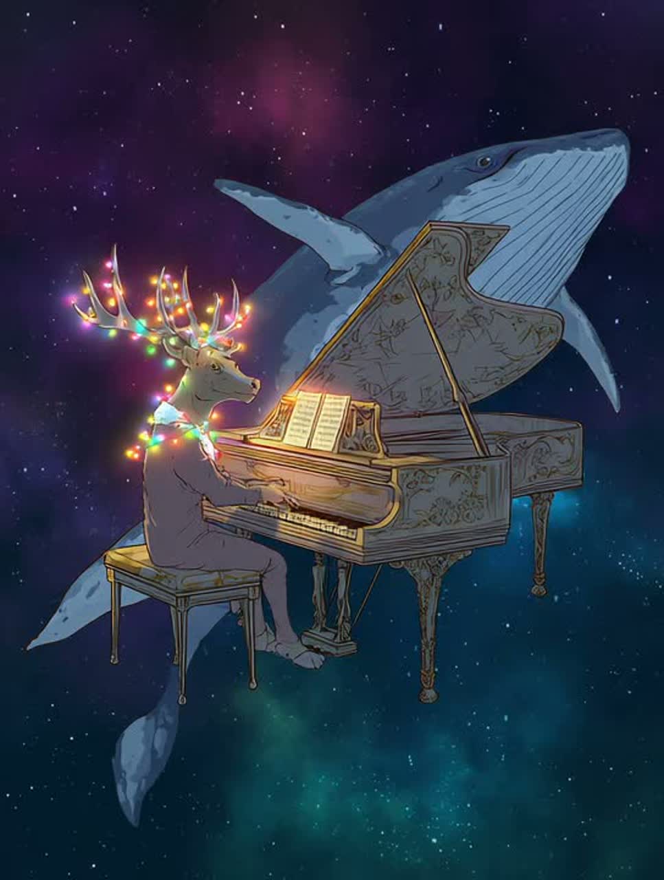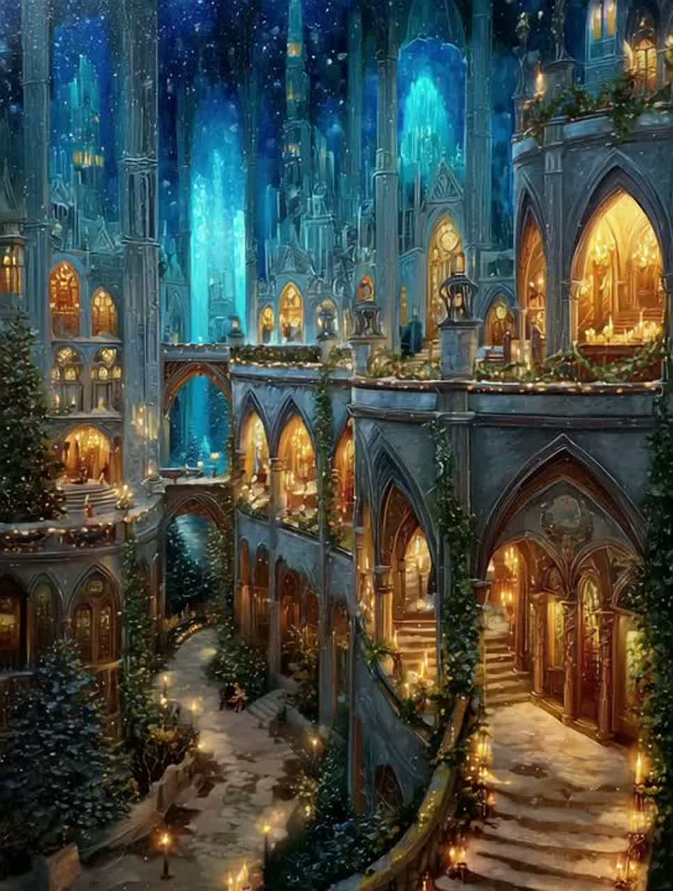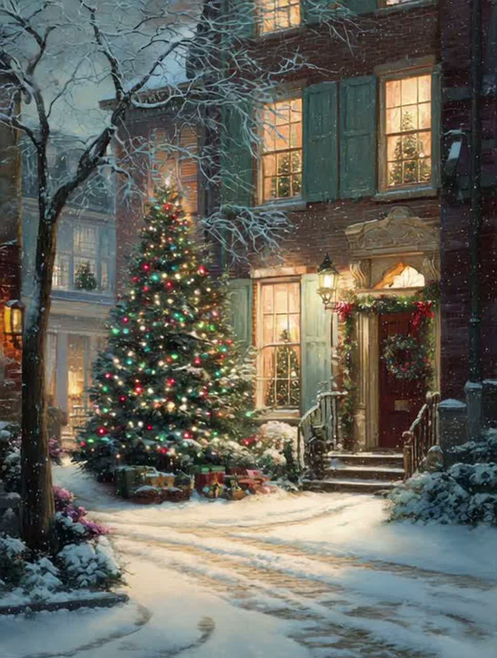 A chamber ensemble opens this Christmas track with a glacial overture — harpsichord, celesta, and muted strings shimmer beneath glass-like choral harmonies, setting a reverent yet chilling tone, Verses alternate between frozen lyrical arias and austere secco recitatives, their phrases suspended in crystalline reverb, Each ritornello returns with icy gravity and silvered brass, like frost reforming on marble, The duet section unfolds with ethereal vocal intertwining, underpinned by subtle wind effects and bowed metallic percussion evoking the sound of breaking ice, An ensemble chorus in operatic verse–chorus form rises in cold contrapuntal splendor, concluding in an elegiac, shimmering finale that fades into a whisper of snow and wind