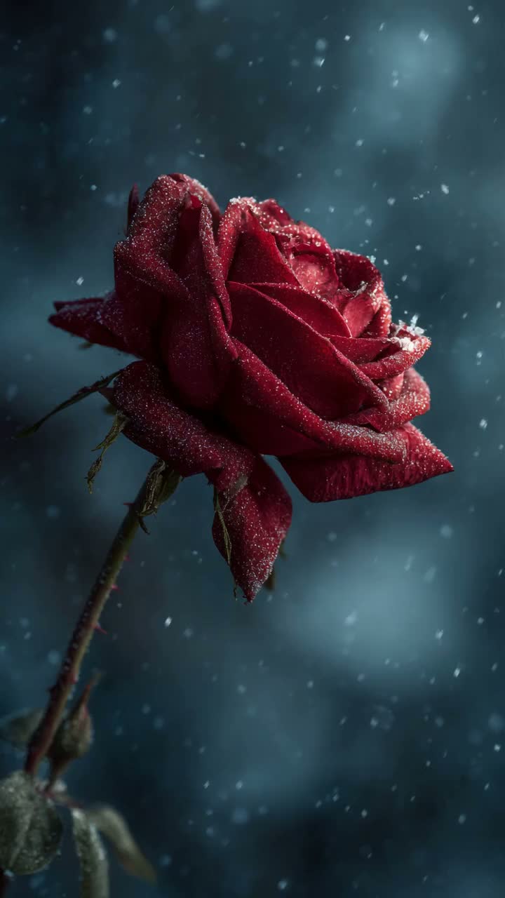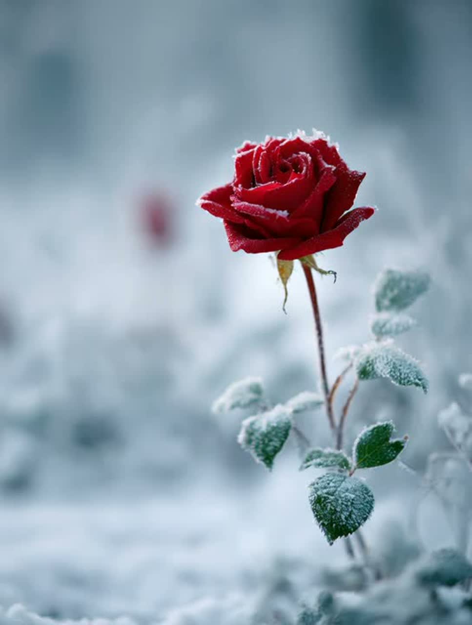 A chamber ensemble opens this solemn Christmas carol, "Lo, How a Rose E're Blooming, " with a glacial overture — harpsichord, celesta, and muted strings shimmer beneath glass-like choral harmonies, setting a reverent yet chilling tone, Verses alternate between frozen lyrical arias and austere secco recitatives, their phrases suspended in crystalline reverb, Each ritornello returns with icy gravity and silvered brass, like frost reforming on marble, The duet section unfolds with ethereal vocal intertwining, underpinned by subtle wind effects and bowed metallic percussion evoking the sound of breaking ice, An ensemble chorus in operatic verse–chorus form rises in cold contrapuntal splendor, concluding in an elegiac, shimmering finale that fades into a whisper of snow and wind