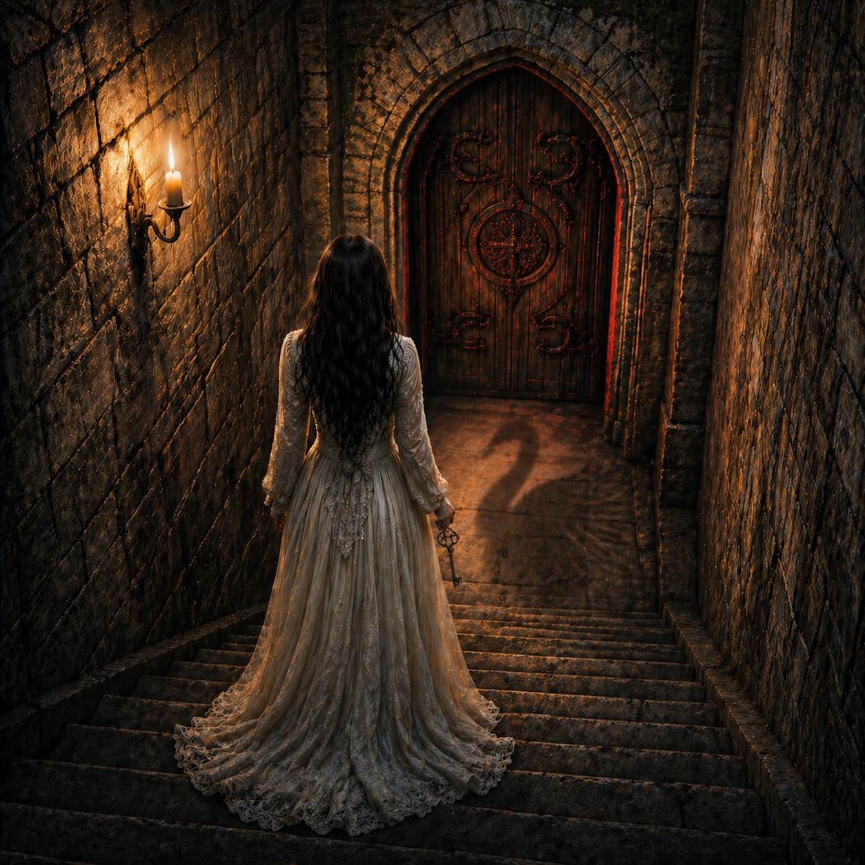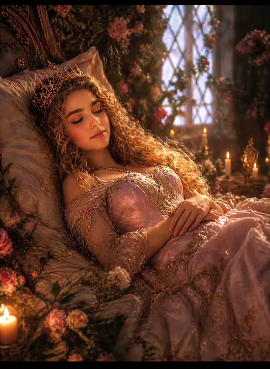 Slavic Metal, Gothic Metal, The Witcher Elements, Dark Emotional Metal deeply emotional, intimate, haunting, Vocals should be female Soft, intimate, emotional, elegant tone, Slightly breathy and fragile in verses, Controlled vibrato, expressive phrasing, Builds into warm, powerful but still gentle delivery in chorus, Lead Violin Very expressive, lyrical playing, Acts like a second voice, long sustained notes, soft vibrato, emotional slides glissando, gentle swells, Lead Guitar melodic phrasing, emotional bends and vibrato, distortion Like Mikko Lindström Him, Rhythm Guitar Dark, strumming, palm muting, clean to distorted tone like Ville Valo Him, Bass deep low-end tone, slow sustained notes, minimalistic and subtle rhythm, slightly dark and resonant, following the emotional flow Like Mikko Paananen Him, Drums cinematic, controlled hits, deep toms, gentle kick Like Juhana Rantala Him, Mood: dark romantic, peaceful, intimate, surrender, emotional, darkness, mystical, acceptance, night