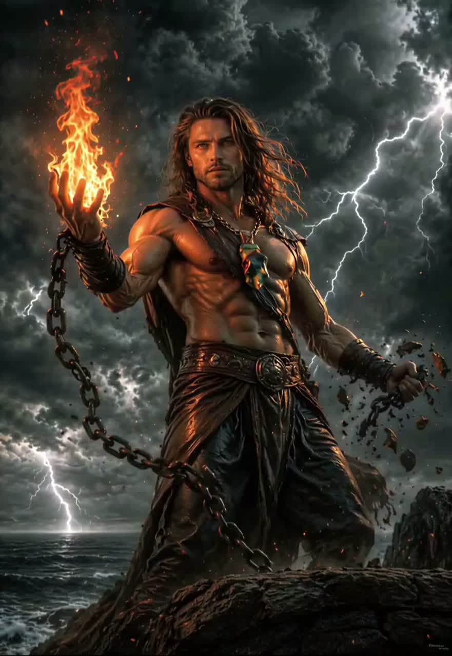 An Glam Metal, Greek Metal, Greek Folk, Hard Rock Mythological Metal Song, Vocals should be Male raspy, emotional, powerful, expressive, slightly raw not too clean, glam rock attitude with emotional depth in The Style Of Sebastian Bach, Lyra main folk lead instrument, emotional melodic lines, Aulos / Panflute airy, haunting melodies, Frame Drum / Hand Percussion ritual rhythm, Bouzouki subtle rhythmic texture, Lead Guitar expressive, emotional bends, screaming solos in The Style Of Dave Sabo Rhythm Guitar crunchy, slightly dirty distortion not too modern, more analog feel in The Style Of Scotti Hill, Bass warm, punchy, follows groove tightly in The Style Of Nikki Sixx, Drums powerful, arena-style, strong snare, deep kick in The Style Of Tommy Lee, Strings violin, cello → soft pads + emotional swells, Mood & Theme: rebellious, defiant, powerful, mythological, ancient, ritualistic, emotional, dramatic, rising intensity, Prometheus stealing fire symbol for freedom, self-creation, resistance