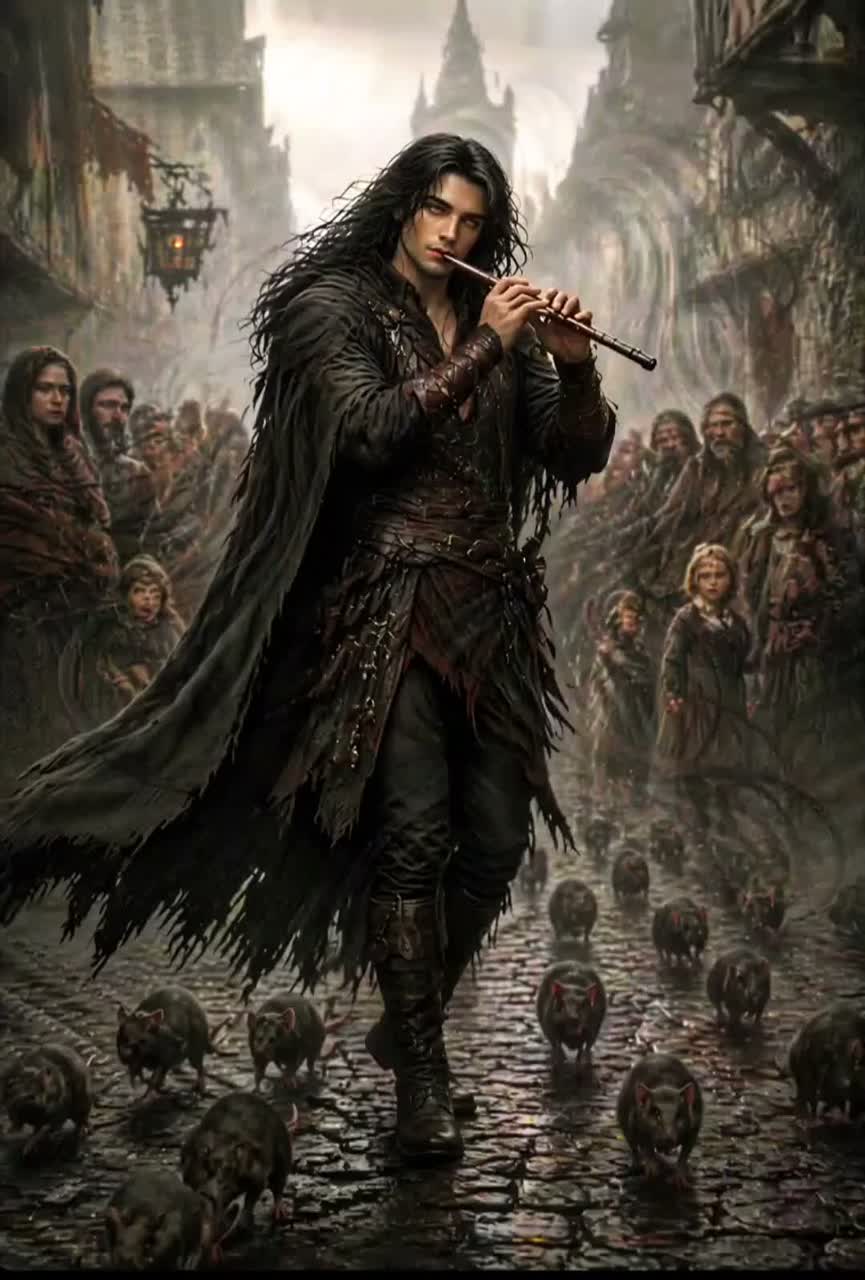 Slavic Metal, Dark Folk Metal, Medieval Ritual Folk, The Witcher Elements, Cinematic Storytelling Metal with strong Pied Piper hypnotic flute-driven identity, Vocals should be female Storytelling, haunting, controlled