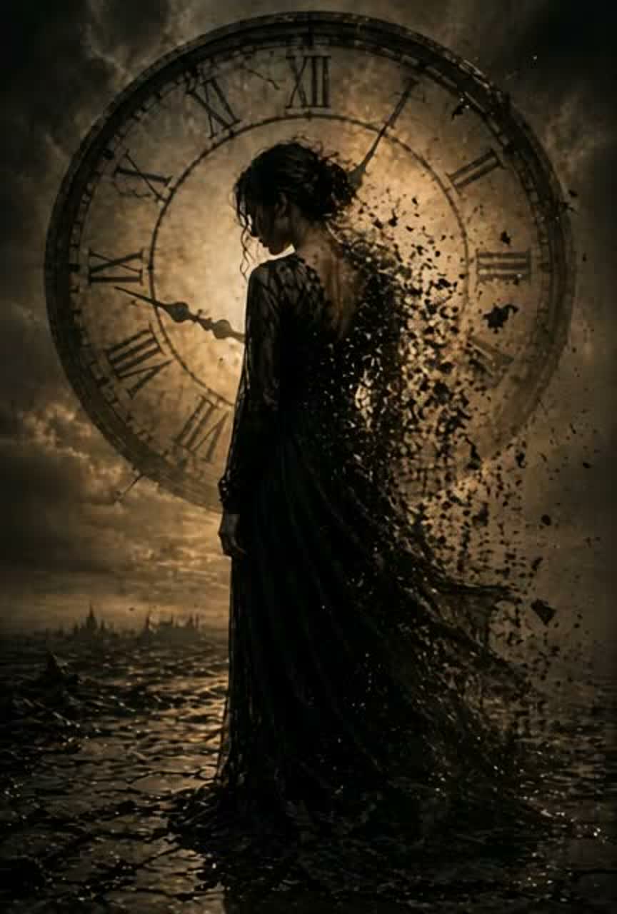 Dark Ambient Folk × Minimalist Piano × Cinematic Chamber, 68 BPM, FEMALE SOLO ONLY, NO DUET, CLEAR SINGLE VOICE, Vocal: soft, intimate, emotional, slightly melancholic, controlled, close-mic, almost whispering in verses, gently rising in chorus, Atmosphere: quiet reflection, time, impermanence, fragile beauty, existential calm, Instruments: soft piano, subtle cello drones, light strings, ambient pads, distant chimes, minimal percussion (soft heartbeat kick), Structure: ambient intro, verse calm, pre-chorus subtle lift, chorus emotional but restrained, bridge spoken-like soft, final chorus slightly fuller, outro fading, Production: cinematic, warm, organic, deep reverb, wide stereo but intimate center, no EDM, no pop gloss, no autotune, Theme: nothing happens twice, fleeting moments, presence, acceptance, breath sounds, slight vocal cracks, long reverb tails, slow decay, emotional pauses