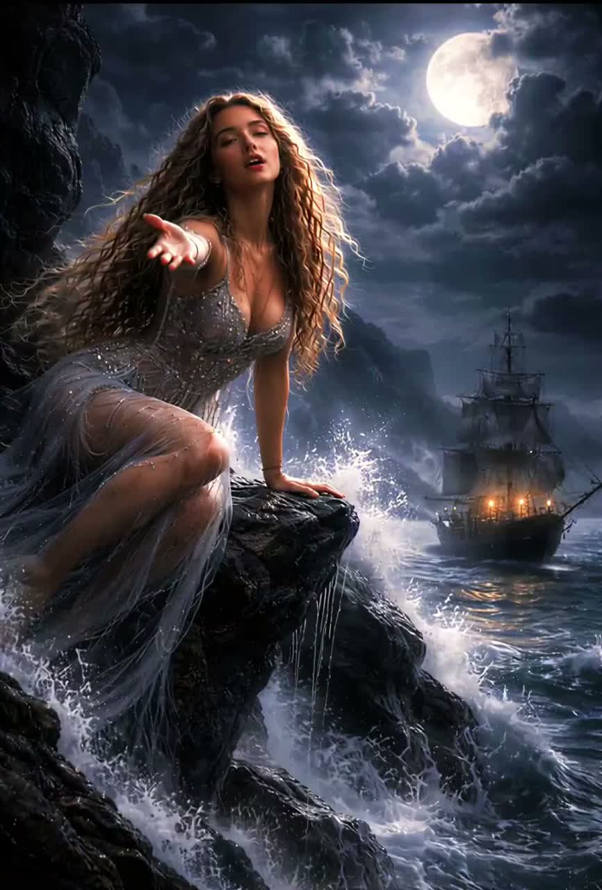 Siren Metal, Pirate Ritual Metal, Siren Death Metal, Oceanic Metal, Vocals should be female seductive, haunting, emotional, Whisper layers, Male Singer beautiful, raw emotional Voice in Bridge, Female choir (ethereal, siren-like, Deep ritual backing chants, Lead Fiddle dramatic, sharp accents, emotional + aggressive, Rhythm Guitar Dark, heavy, Slow, crushing riffs in The Style Of Izzy Stradlin, Lead guitar pull of the ocean, danger behind the beauty, emotional echo of the violin and vocals, Screaming Siren Like in The Style Of Traci Guns, Bass Deep, rumbling, “ocean floor” feeling Follows rhythm, adds weight in The Style Of Nikki Sixx, Drums Tribal drums low, ritualistic, Cinematic percussion hits, Pirate-style rhythmic groove in The Style Of Tommy Lee, Frame drums, deep toms, distant hits, Occasional metallic hits like ship sounds, Mood: seductive, dangerous, oceanic, hypnotic, ancient, ritualistic, dark feminine power, haunting