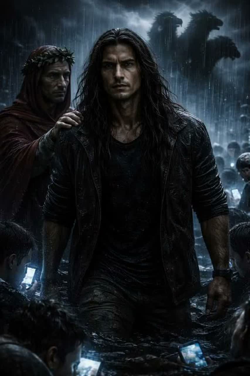 Dark Medieval Metal, Symphonic Metal, Gothic, FORCED Heavy Pipe Organ Solo, Foreground liturgical Pipe Organ, Thick Distorted Electric Guitars, Deep Baritone Vocals, Operatic and Gritty, Slow Tribal Percussions, Cello, Lute, Hurdy-Gurdy, Atmospheric Rain and Thunder SFX, 440Hz, cinematic, no rap, no hip-hop