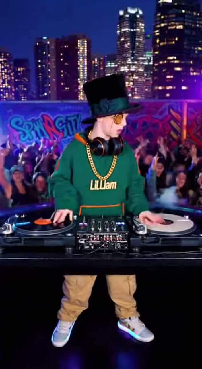 Lil Liam Poppycock vocal, British rap, 808 bass drum, drum machine dance beat, 808, Lil Liam Poppycock, record scratching, sampling, ‑female or American vocals