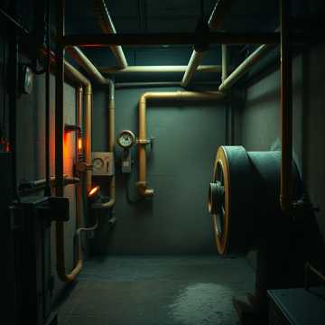Glitch-Techno, 115 BPM, Buzzing electrical interference, "hissing" steam release samples, gritty square-wave bass, sharp percussive clicks