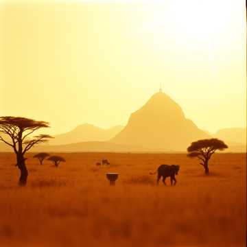 [instrumental][no vocals][ethnic world fusion] Slow African savanna sunrise, warm fingerstyle acoustic guitars, soft djembe and talking drum hits, dried gourd shakers, kalimba flute melodies with long reverb echoes like nature awakening, 80 BPM pulsing rhythm builds from silence: intro bird samples, verse with guitar + djembe, chorus full percussion layers (congas, bongos), ambient pads for depth, Dynamics: quiet verse-buildup-chorus crescendo in bridges, fade-out to atmosphere, Effects: 40% reverb, flute delay, light guitar chorus, studio clarity like Mapa’s African Sunrise, Structure: [Intro: pads + flute] [Verse 1: guitar + djembe] [Chorus: percussion layers] [Bridge: kalimba solo] [Outro: silence fade], Seamless flow, warm ethnic meditation vibe for travel videos, continuous groove