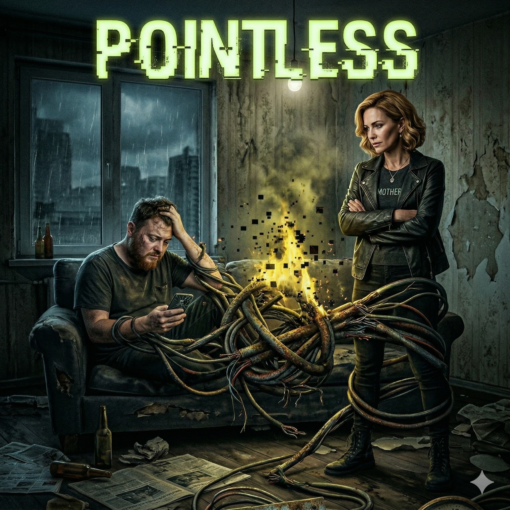 Dark Cinematic Trap, 92 BPM, Ticking clock percussion, deep ominous sub-bass, eerie minor-key piano echoes, Male and female duet, Male vocals are exhausted and melodic; Female vocals are sweet but predatory and whispering, Sharp, staccato delivery, Atmosphere of psychological tension, gaslighting, and verbal traps, High-fidelity, polished, dark-pop production