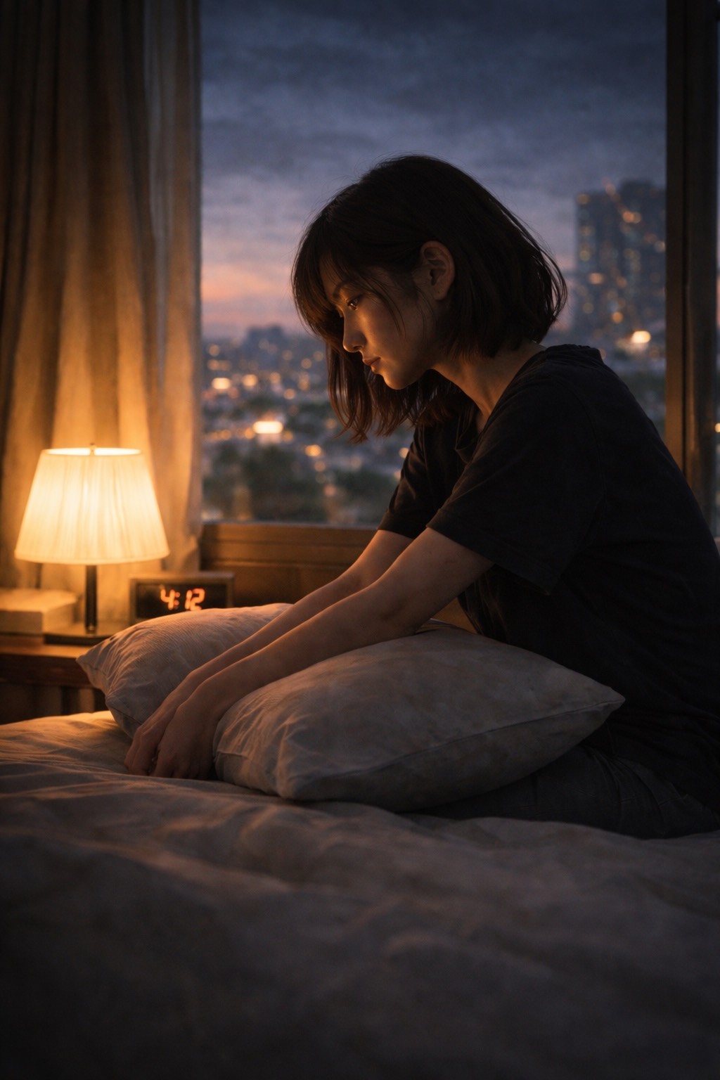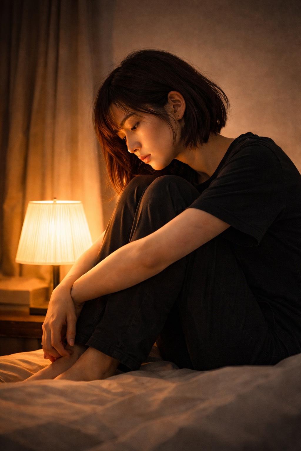 The track starts immediately with a tight, lively groove featuring a fat round analog bass, soft Fender Rhodes with tremolo, organic crisp hi-hats, and finger snaps, The vocals feature a hyper-realistic Japanese OL persona—deep, breathy, and sophisticated—intimate close-mic detail captures every natural inhale, soft sigh, and delicate mouth sound, The delivery is effortless with subtle vocal fry and graceful mid-range melismas, Rich, multi-layered velvet harmonies and dense vocal stacks provide a warm, ethereal backdrop throughout, Smooth transitions, no harsh frequencies, warm analog tape saturation, and lush stereo imaging at 95 BPM, blending sophisticated soul-pop with a dreamy, modern Japanese aesthetic, ‑cello