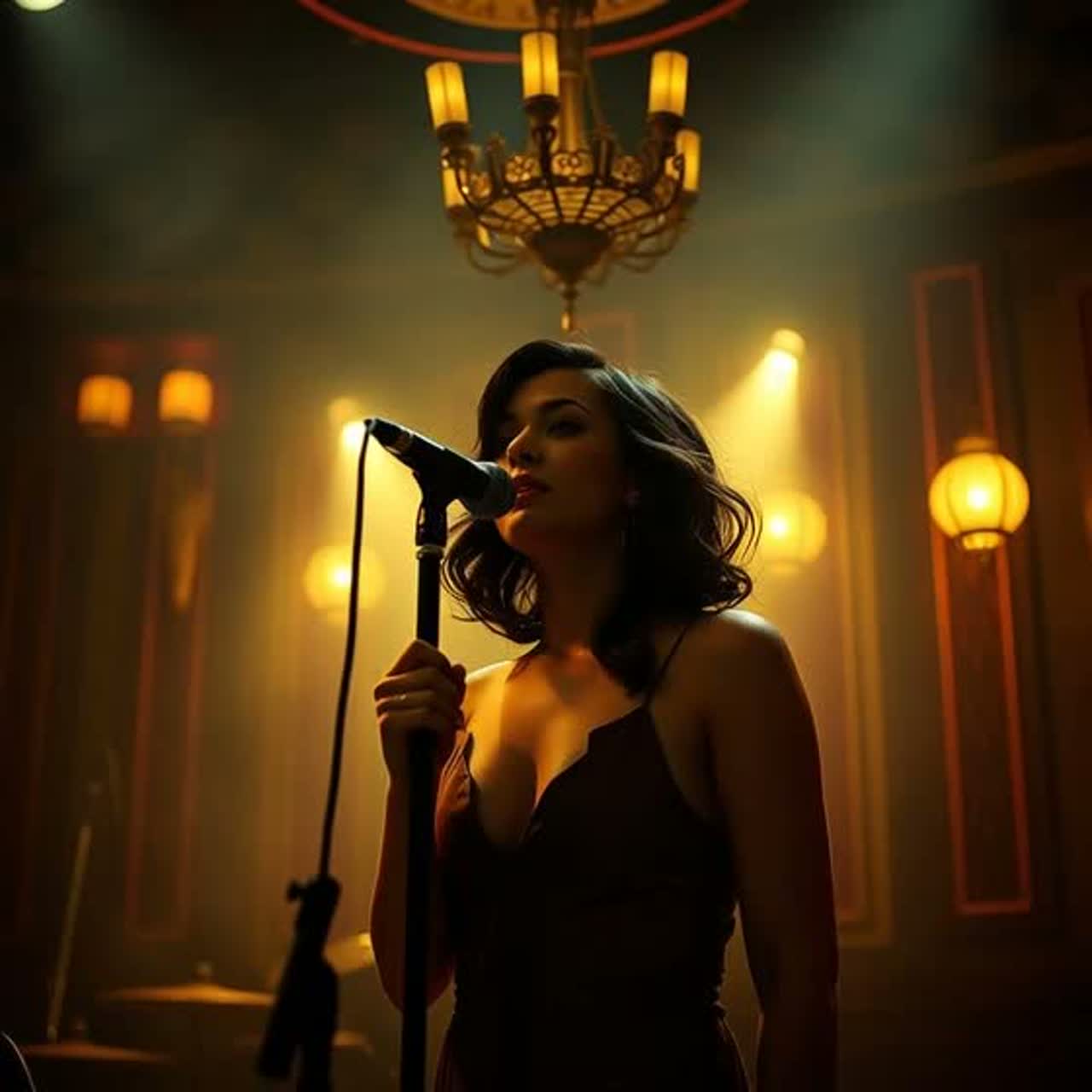 Vintage Shanghai female jazz singer, 1930s–1940s style, smoky nightclub atmosphere, slow tempo, minor key, emotional but restrained vocal, breathy and seductive, classic, piano and double bass, soft trumpet, old gramophone texture, melancholic and elegant, female vocal sings softly with breath, slightly behind the beat, like whispering a confession on stage, ‑strong belting, ‑high energy, ‑electronic beat, ‑upbeat tempo