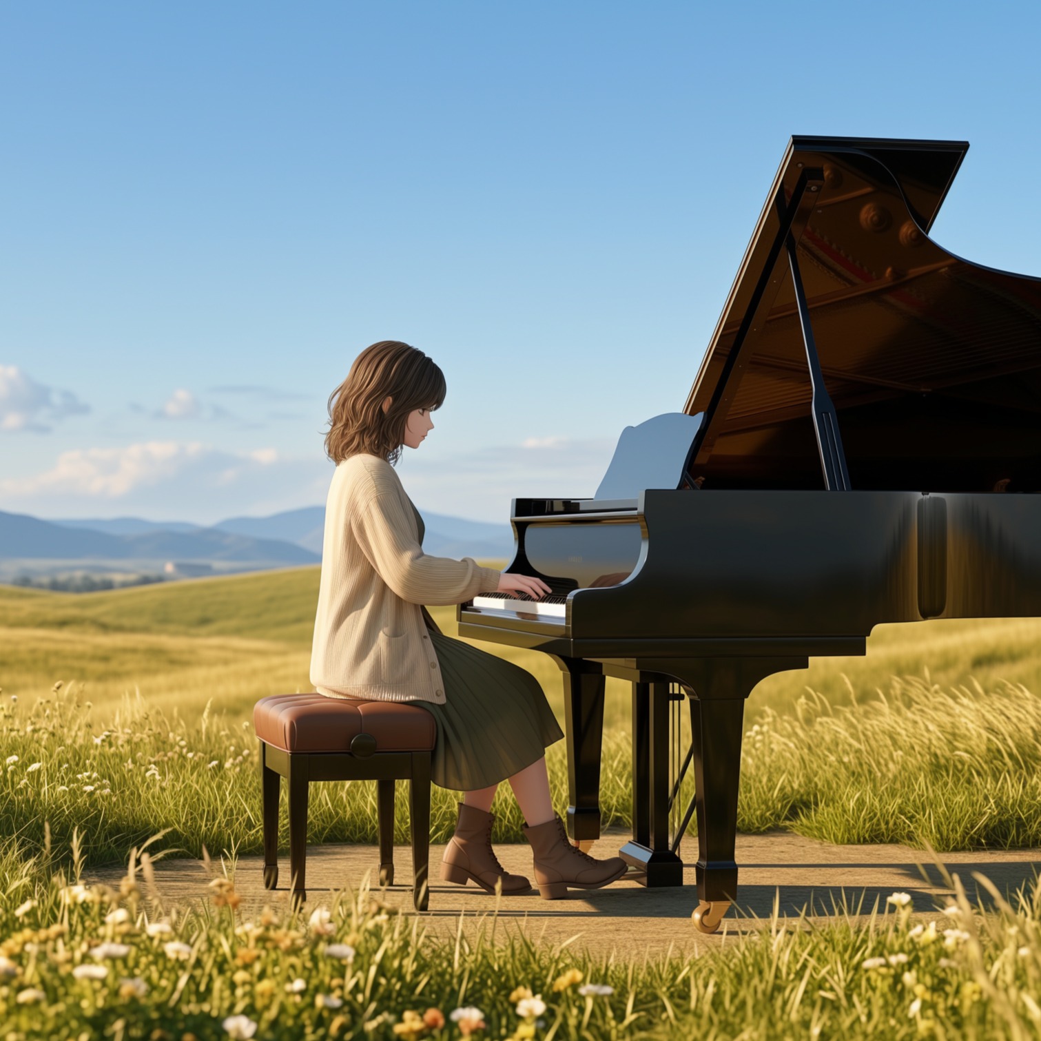 70s Japanese Folk Rock, Emotional Female Vocals, Grand Piano, Sweeping Strings, Orchestral Pop, Ballad, Nostalgic, Dynamic Build-up, Gentle Acoustic Guitar, Cinematic, High Fidelity