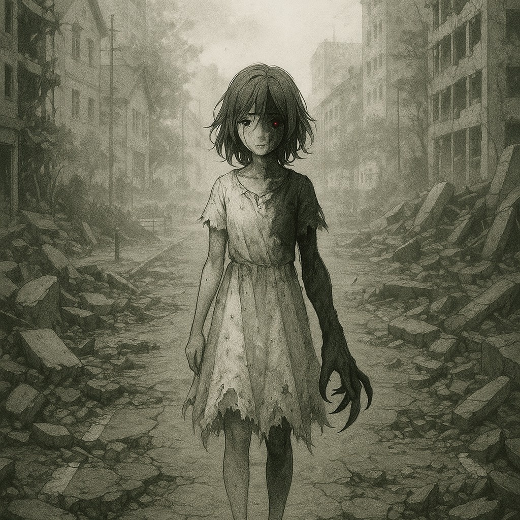 2000s anime opening theme style, Japanese pop rock, dark rock, iconic electric guitar riff intro with 2 guitars layered, short drum fill at the very beginning, bass slide-in for impact, power chords and melodic riff, minimal synth SE at intro for sci-fi flavor, mid-fast tempo, bright and adventurous, emotional and powerful, anime-style, androgynous youthful vocal, slightly husky and rough texture, boyish tone with warmth, emotional and raw singing style, mid-high range focus, sounds like a teenage boy voiced by a female voice actor, energetic, passionate, adventurous anime theme performance