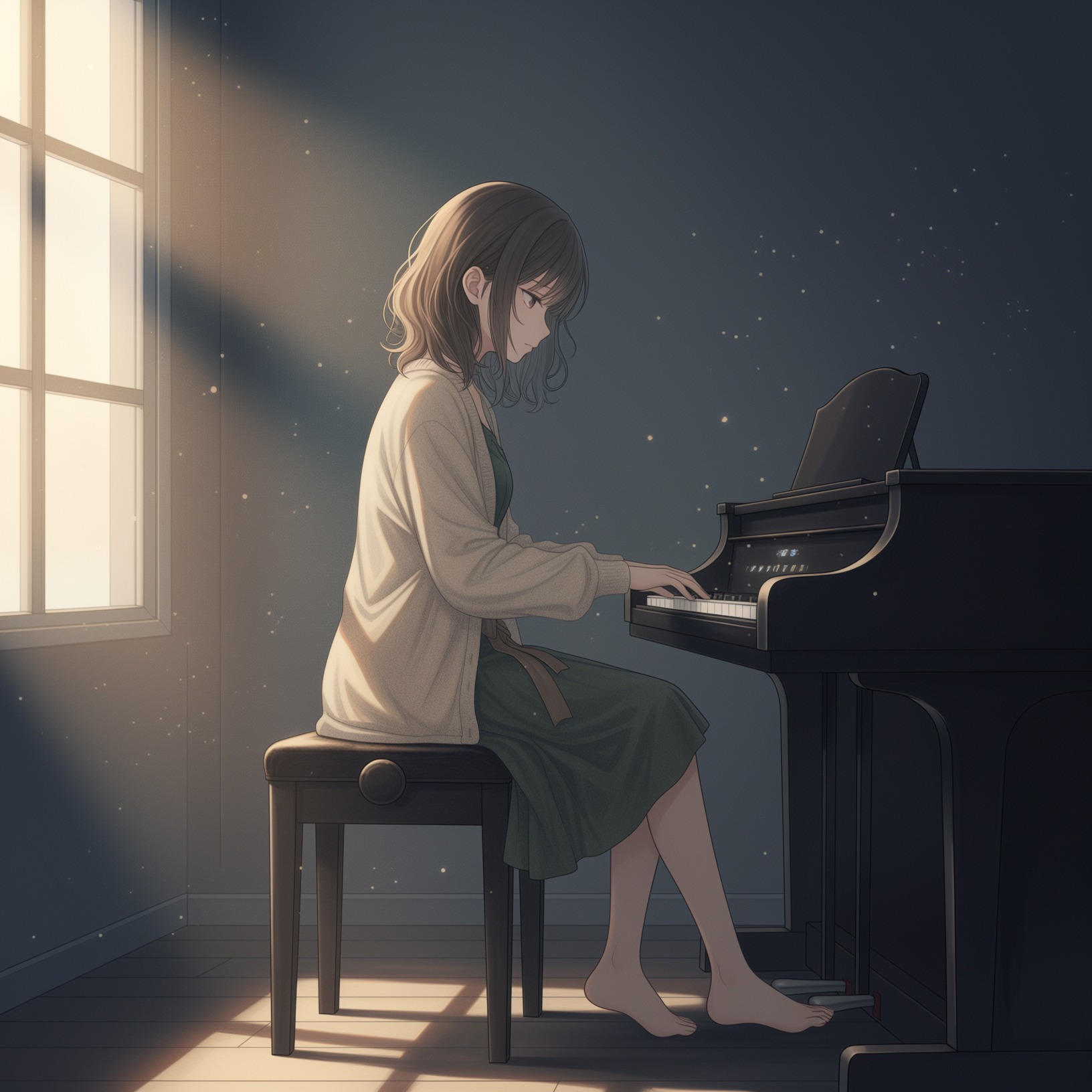 single female vocal only, no backing choir, no harmonies, BPM 105, intro with acoustic guitar arpeggio and piano before the vocal, very slow phrasing, each word sung with care and space, clear and gentle emotional singing, acoustic pop ballad in the style of a 1990s anime ending theme, simple singer-songwriter style arrangement, acoustic guitar and piano as the main instruments, subtle and minimal background strings, warm and nostalgic yet hopeful atmosphere, evoking family love, sunlight, and gentle tears, slow singing