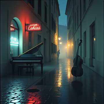 An instrumental featuring piano and upright bass, Piano-centered jazz harmony, Slightly slow tempo with a relaxed, steady flow, Theme: Italy
