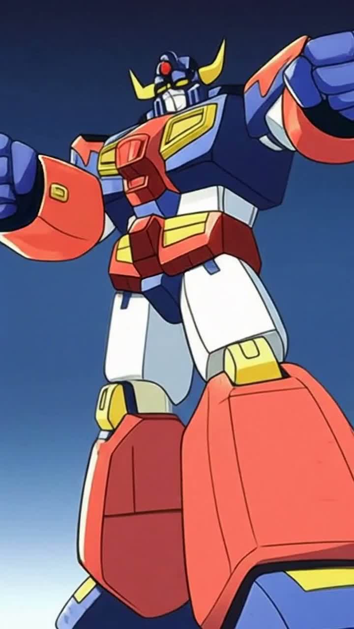 An epic, hot-blooded anime theme inspired by 1970s super robot shows, Powerful drum beats drive the rhythm, accompanied by soaring brass fanfares, electric guitar riffs, and bold orchestral strings, The arrangement blends heroic melodies with call-and-response vocals, evoking images of giant robots launching into battle against colossal enemies, Steady BPM 80 creates a strong, march-like momentum, delivering both grandeur and raw emotional power for a classic anime opening feel