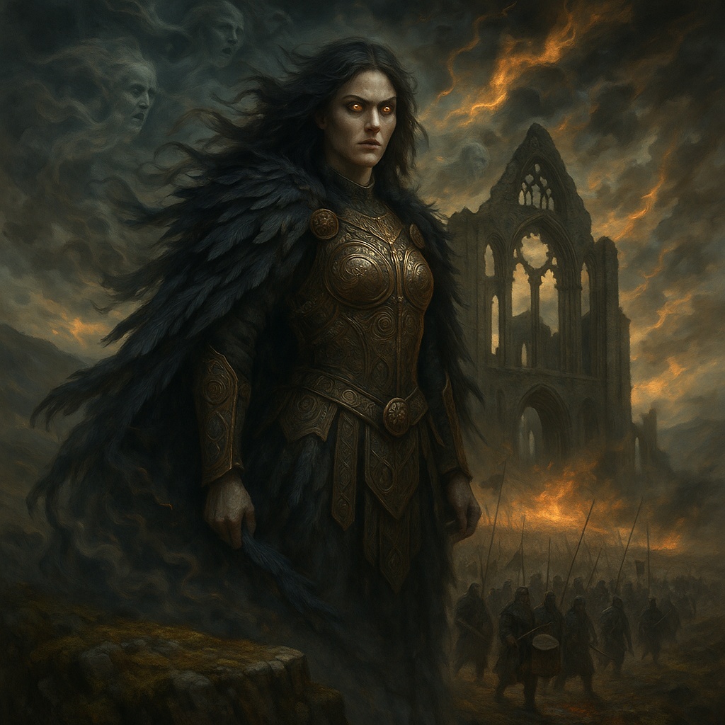 Genre: Instrumental Celtic metal fused with cinematic ritual intensity, Bagpipes and bass guitars merge with cathedral-like grandeur, Style: No vocals — melodies carried by pipes and choirs, Story unfolds through dynamic shifts, from tribal motion to sacred thunder, Mood: Fierce, sacred, mythic, The sound of war, worship, and Highland legacy, Singer's Voice: None, Emotional narration is delivered by bagpipes and two deep, reverberant male cathedral choir sections, Instrumentation: Bagpipes, distorted bass, tribal percussion, cinematic drums, cathedral organ, ambient pads, glitch textures, shimmering metals, glockenspiel, cymbal trails, full cathedral choir with bass dominance, Mastering: Bold and wide cinematic spectrum, sub-heavy bass layers, sparkling highs, spatially mapped reverb — studio quality, high-fidelity, best quality production, professional mix, mastered sound