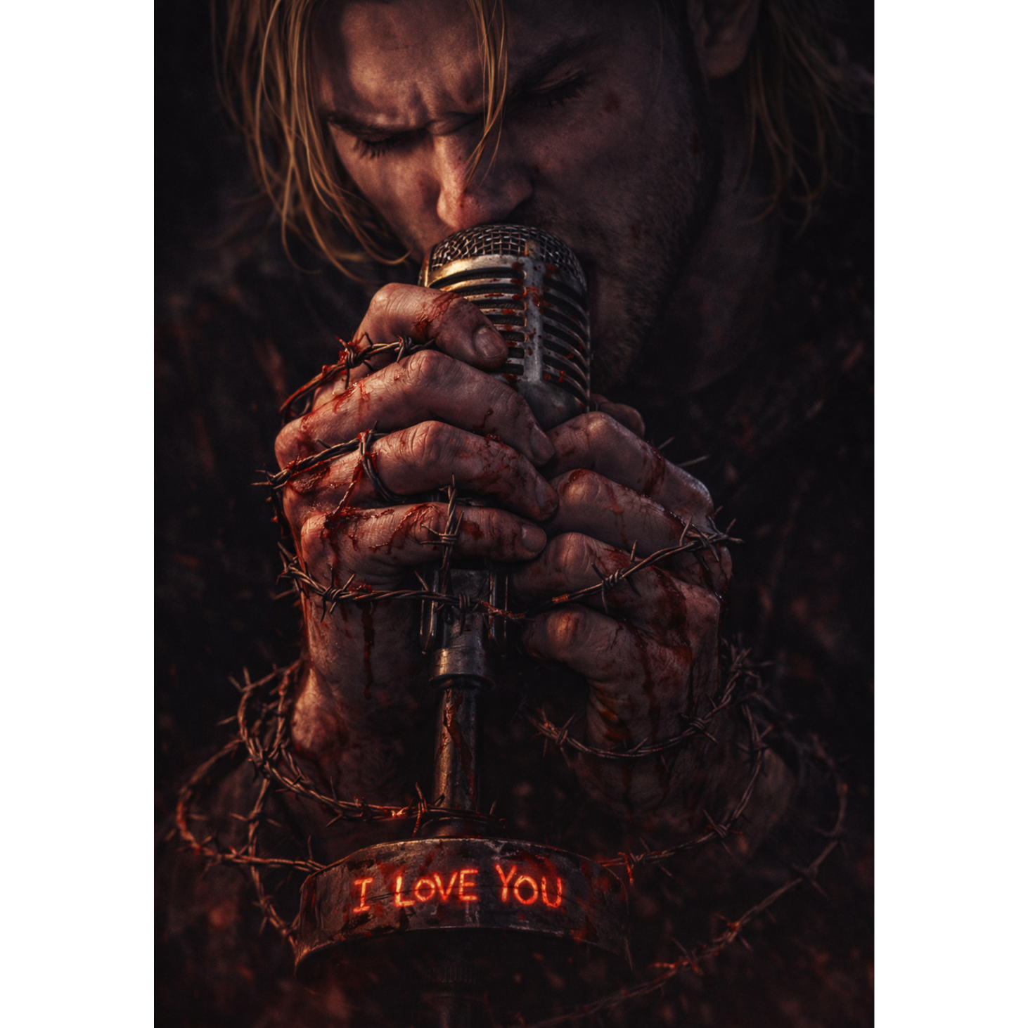 VOCALS: Male rap only, intense, manic, sometimes whispering conspiratorially, then shifting to aggressive shouting, Sarcastic tone on "I love you", INSTRUMENTATION: Haunted minor-key piano melody loop, heavy distorted 808s that sound like a slow heartbeat, sharp metallic snares, eerie background synth pads, occasional sound of a knife sharpening, MOOD: Obsessive, Creepy, Manic, Dangerous Intent