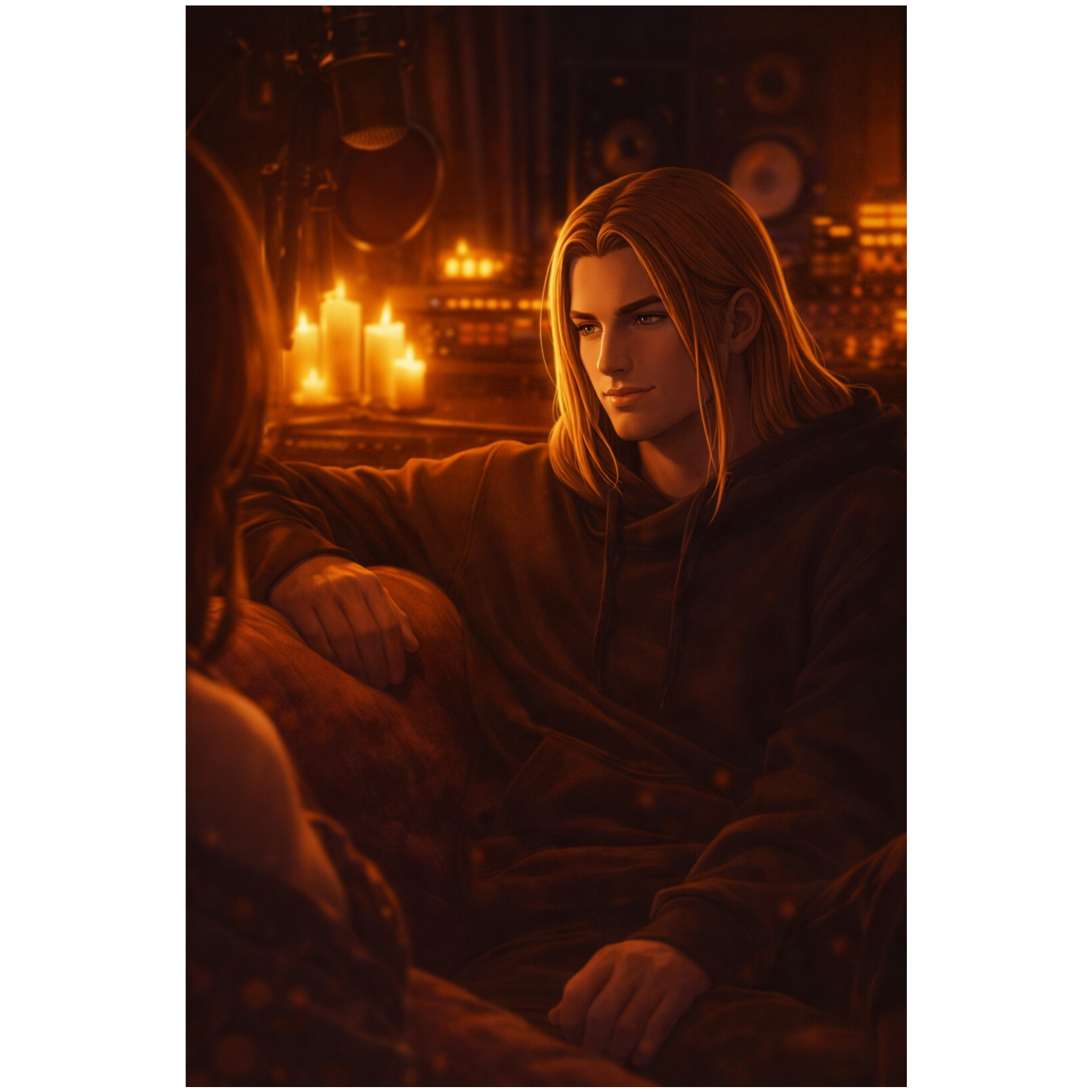 VOCALS: Male rap only, but soft, low-pitched, intimate voice (bedroom voice), Smooth flow, almost spoken word in parts, INSTRUMENTATION: Acoustic piano melody, soft rain ambience, deep warm sub-bass (heartbeat style), smooth synth pads, light finger snaps instead of heavy snares, MOOD: Romantic, Intimate, Vulnerable, Warm
