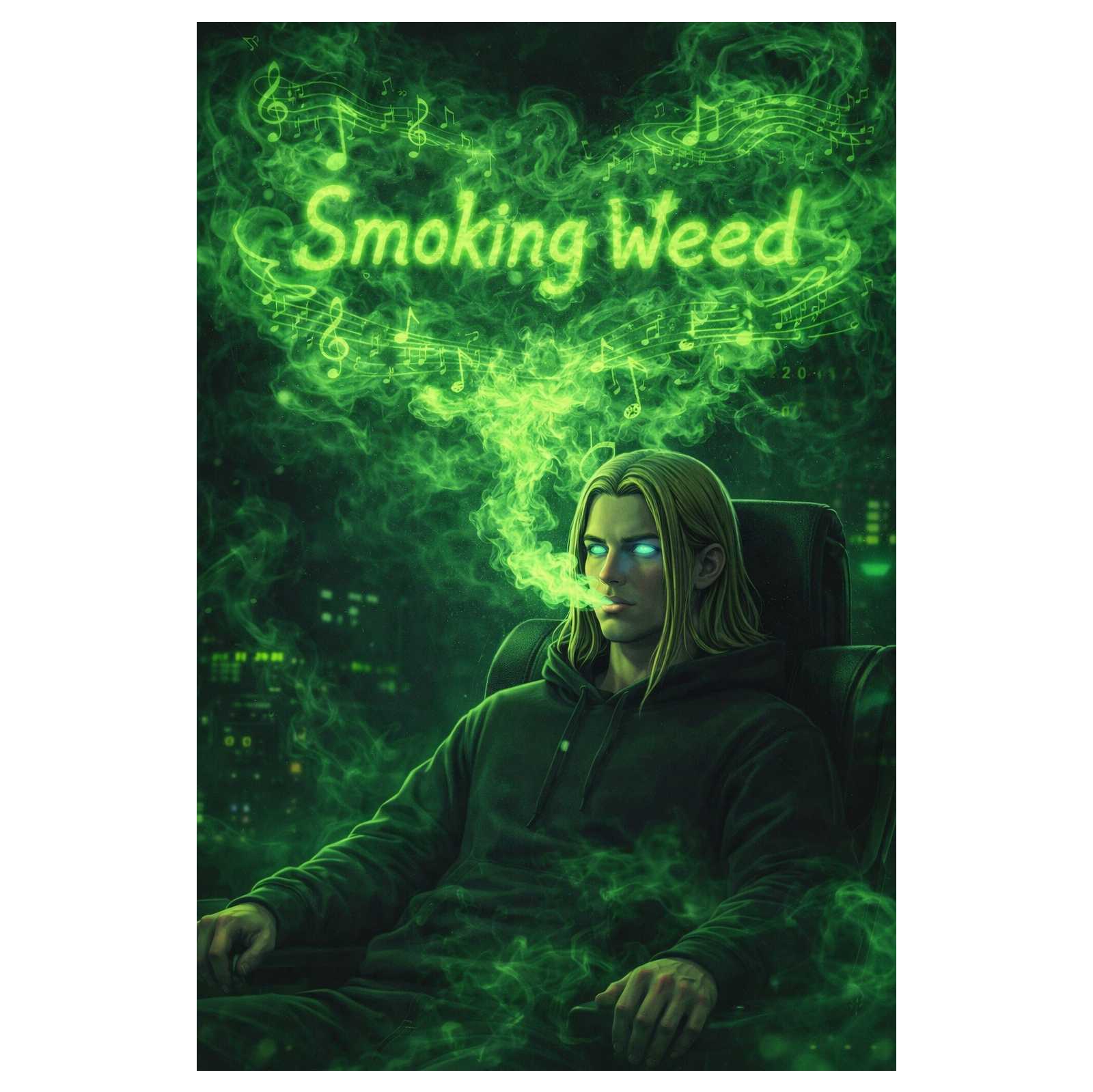 VOCALS: Male rap only, Laid back but extremely precise technical flow, Slight echo/reverb effects on ad-libs, Chill but aggressive tone, INSTRUMENTATION: Hazy ambient synths, deep sliding bass, crisp snapping snare, sound of a lighter and bong rips integrated into the beat rhythm, MOOD: Elevated, Focused, Chill, Superior
