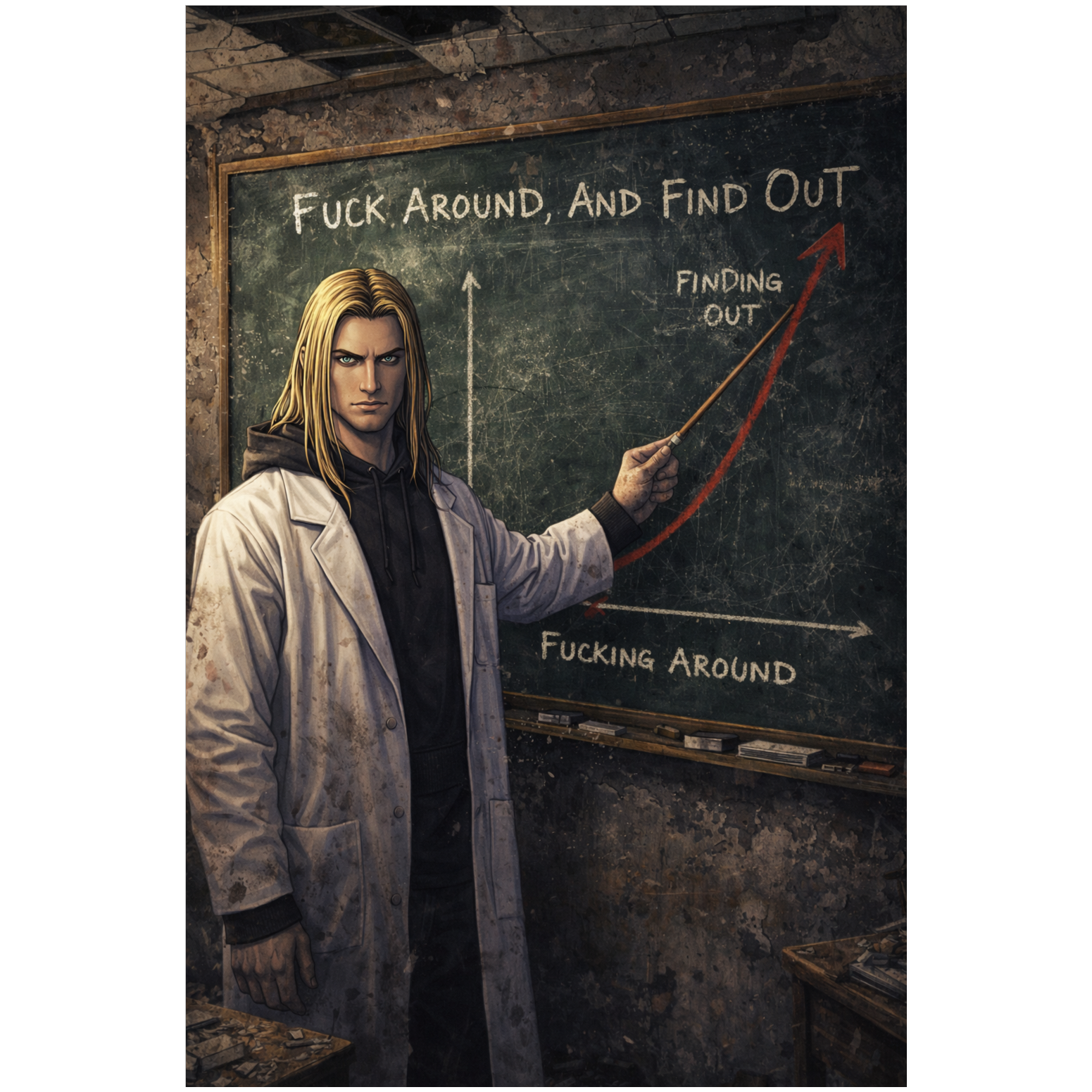 VOCALS: Male rap only, mocking tone, rapid delivery, Hard pronunciation, INSTRUMENTATION: Cowbell melody, distorted 808 bass, heavy trap drums, chalkboard scratching sounds used rhythmically, rising sirens, MOOD: Educational (in a dark way), Violent, High-Octane