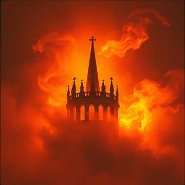 A dark, cinematic big-beat track inspired by apocalyptic industrial rock and orchestral drama, Structure: Verse1 → Verse2 → Bridge (spoken: “I knew everything, ”) → Chorus → Bridge2 (spoken) → Explosive Chorus → Final Chorus → Outro (whisper), Use heavy breakbeats, deep sub-bass, and massive orchestral hits—sharp metallic “GYAN!” stabs on each downbeat, Layer strings, brass, and choir for a tragic dystopian tone showing humanity’s fall through science and silence, Bridges use radio-distorted spoken quotes with echo and decay, Chorus1 swells with cinematic power as acid bass fuses with orchestral blasts and dark harmonies, Bridge2 builds tension with distorted drums, reversed cymbals, and risers into a symphonic drop, Chorus2 delivers the grand climax—full orchestra, choir, and breakbeat chaos symbolizing despair, Keep intensity with industrial percussion and choral dissonance, Outro fades to whispers and static, leaving an echo of irreversible fate, Tempo 118 BPM, Key E minor