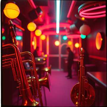 70's big band, Trombones, Trumpets, Saxophones, Analogue synthesizers, fretless bass, Analog Reed syntheziser instrument EWI