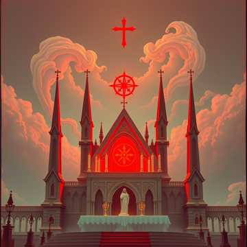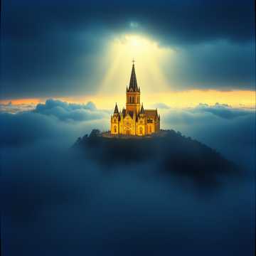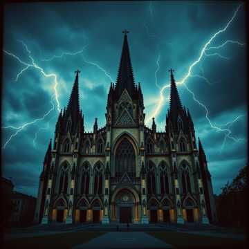 This symphonic gothic metal worship epic begins with pipe and Hammond organs, lush synth pads, church bells, and thunderous guitars, dynamically layered in a Dolby Atmos mix, Soaring female vocals lead over swirling choirs—gospel calls answered by gothic tones, fused with cinematic orchestration, trance grooves, and harp runs, Shifting between hypnotic rhythms, handclaps, and intricate vocal chops, it surges with progressive drops, avant-garde metal breaks, and modal shifts, Enveloping, epic crescendos blend drone textures, live piano, and orchestral swells for a triumphant, immersive soundscape