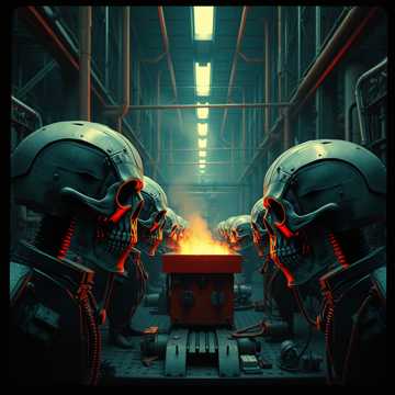 Brutal Crossbreed Hardcore x Drum & Bass, Distorted industrial kicks, aggressive reese basslines, glitch stabs, metallic textures, and apocalyptic atmospheres, Fast, violent and mechanical, Amen fills for chaos, Male Vocals: Shouts (“Crush!”, “Obey!”, “Skullforge!”) at drops and breaks, [intro 0:00/0:30], [blast 0:30/1:30], [mid break 2:00/2:20], [second blast 2:20/4:40], [outro 5:30/6:00]