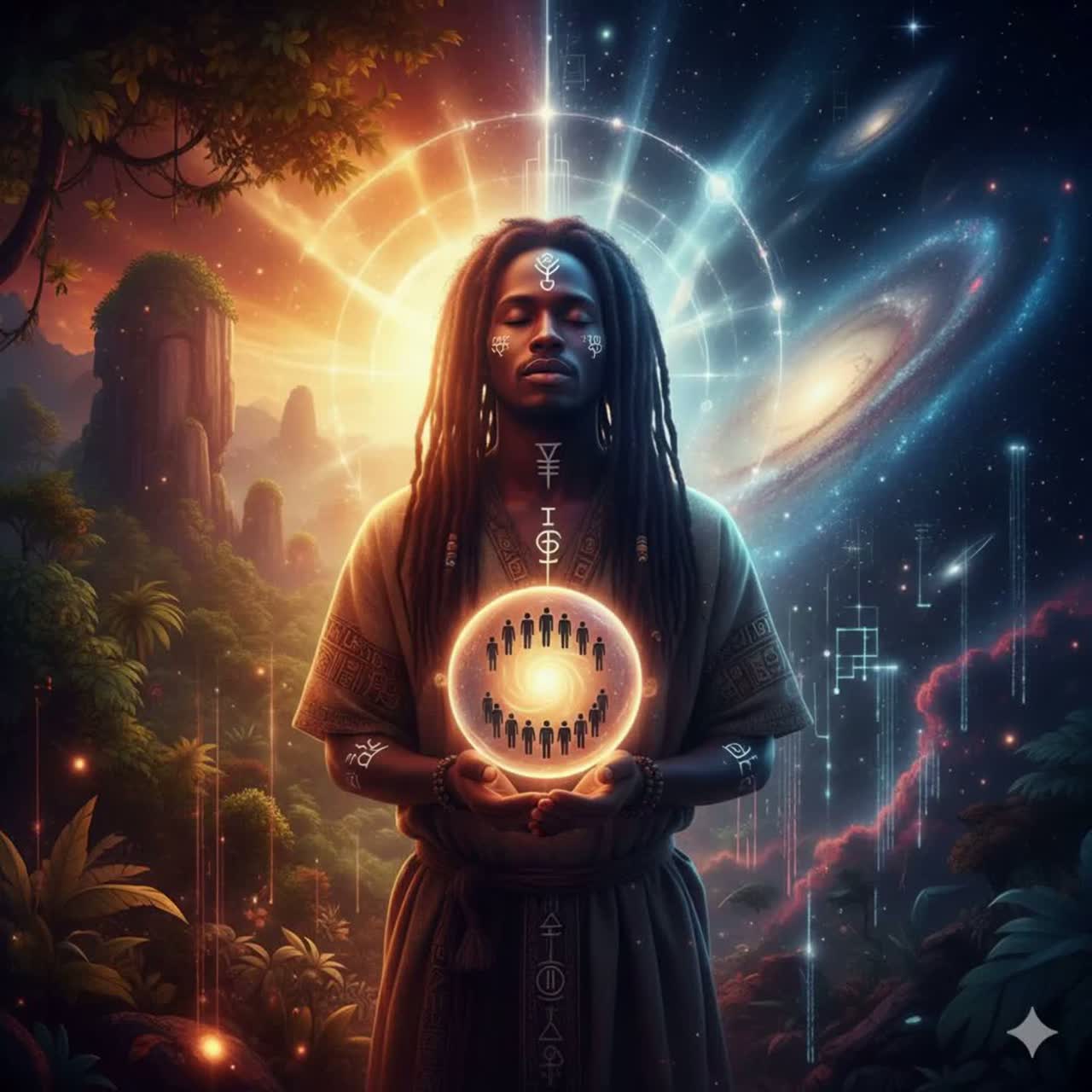 Futuristic Roots Reggae, Cybernetic Dub, Deep digital bass, Spacey synthesizers, Transitions from acoustic djembé to electronic reggae, Mid-tempo, Thoughtful, Hopeful, Male