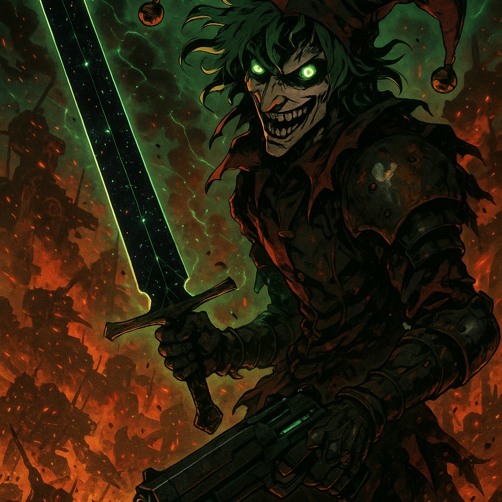 Breakcore, amen break, ULTRAKILL, doom metal, alternative, pipe organ, resonant, commanding, dark drum and bass, exaggerated, rock ballad, techno, studio, fast tempo, high bpm, layered, emotional crescendos, chaotic, moving, baritone