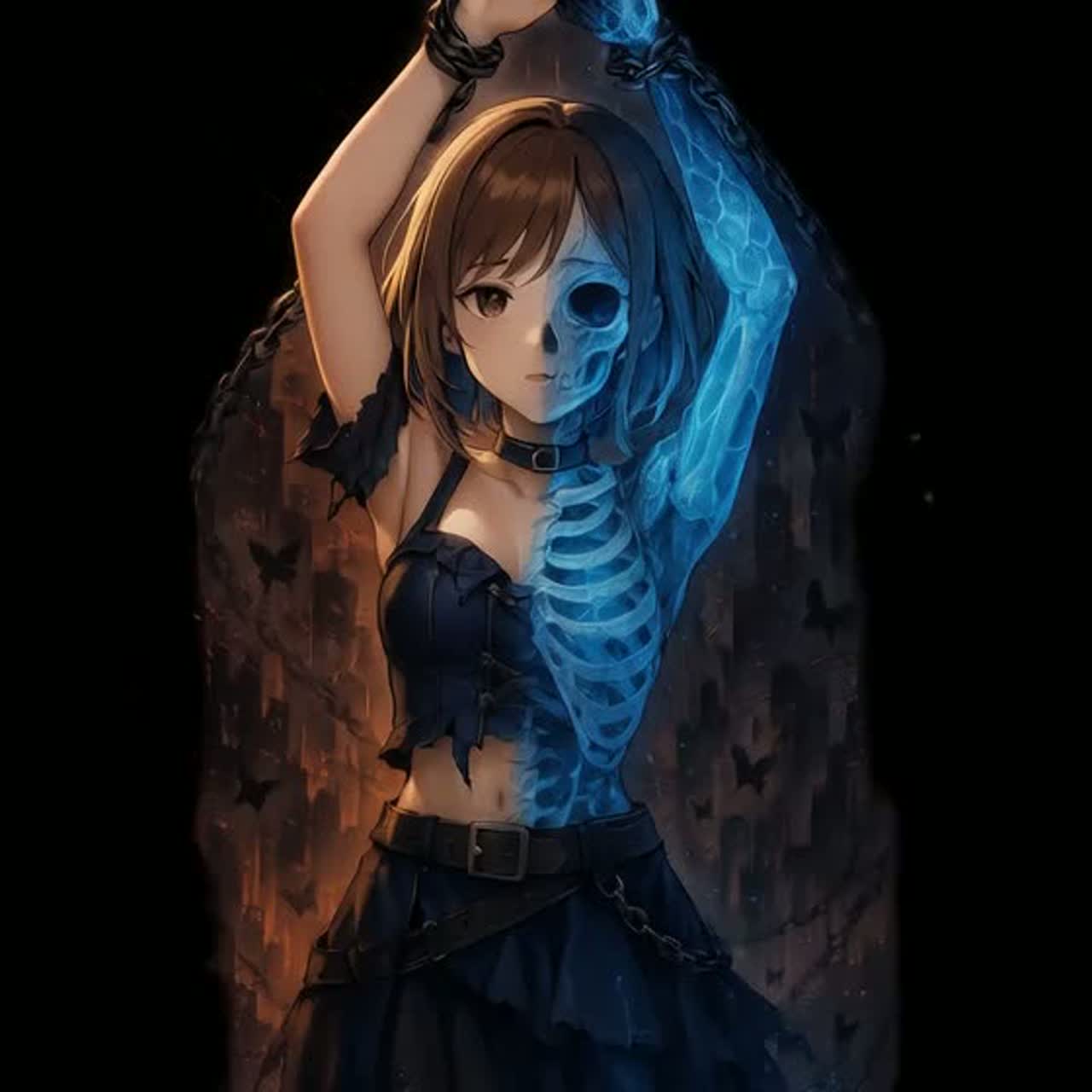 This digital hard rock track in B minor opens with crushing bass, gritty electric guitar riffs, and pounding, tightly synced drums, Verses feature dark, trance-like synths lending a J-Rock flavor, Choruses burst with stacked guitars, rapid-fire rhythms, and sweeping, emotional layers