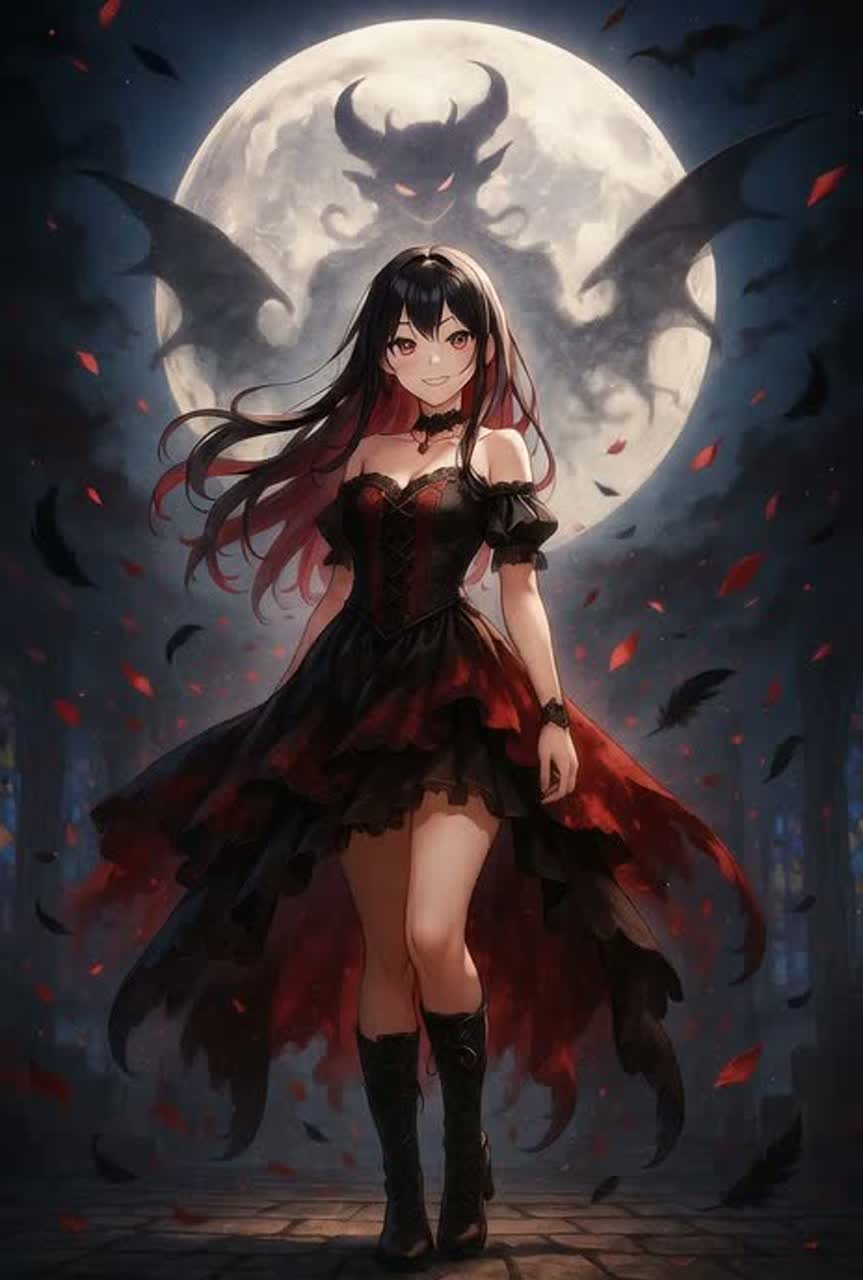 Gothic Rock, Digital Dark Pop, theatrical, haunting, gothic elegance, mid-tempo 105 BPM, dark organ-like synths, tolling bells, clean arpeggiated guitar, moody bass, distorted guitar riffs, cathedral-style synths, dramatic strings, choral textures, heavy digital drums, whisper voice elements, spoken interlude, sparse piano, harpsichord-like synth, pipe-organ style phrases, haunting guitar melody, layered choir harmonies, explosive but elegant choruses, fiery climax, wide stereo image, cathedral reverb, subtle distortion, powerful low-end, rich mids, shimmering highs, mood: gothic, theatrical, sinister yet beautiful, blending cute sweetness with jealous obsession