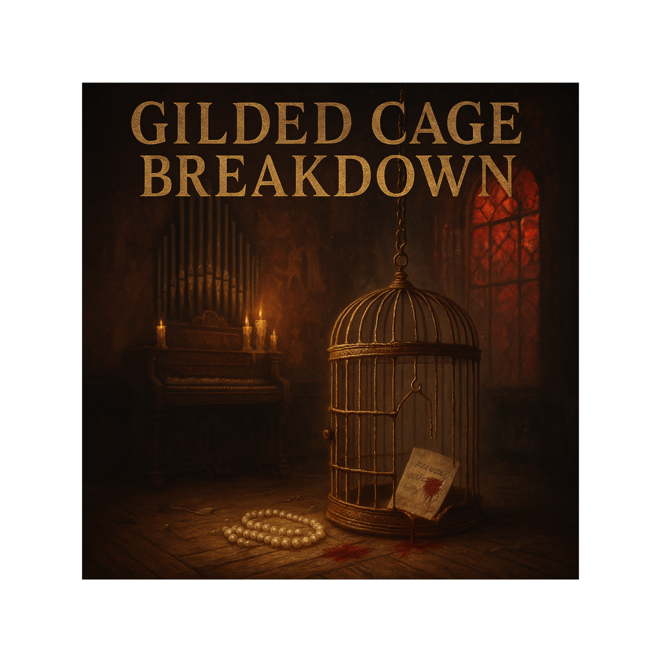 Gaslight Murder Waltz: decaying Victorian music box melody, wheezing pump organ, bone percussion & dissonant strings, A deranged 3/4 tempo where prim soprano vocals crack into axe-thud beats, BLOOD SPATTER Female vocals
