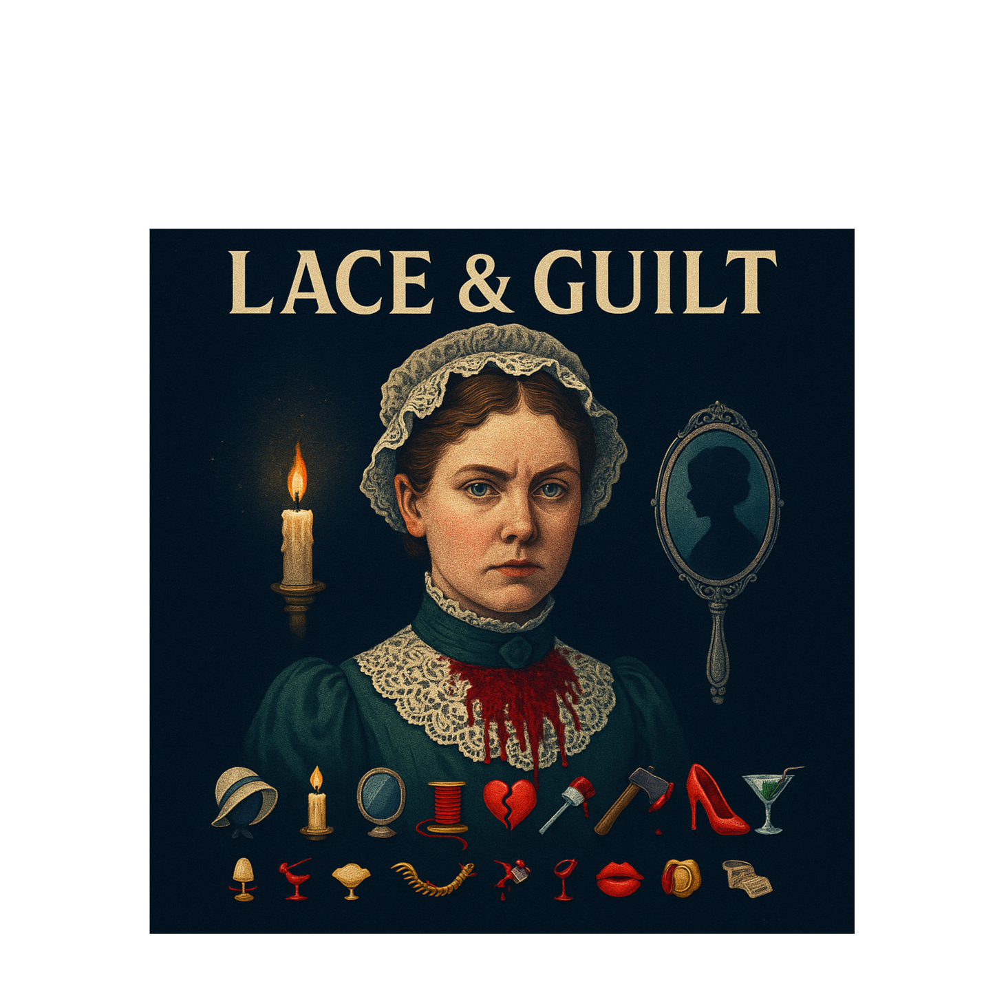 Dark Victorian murder ballad fused with modern trap: eerie piano, ghostly harmonies, creaking floorboard percussion, and heavy 808s beneath poetic, ambiguous lyrics, female vocals