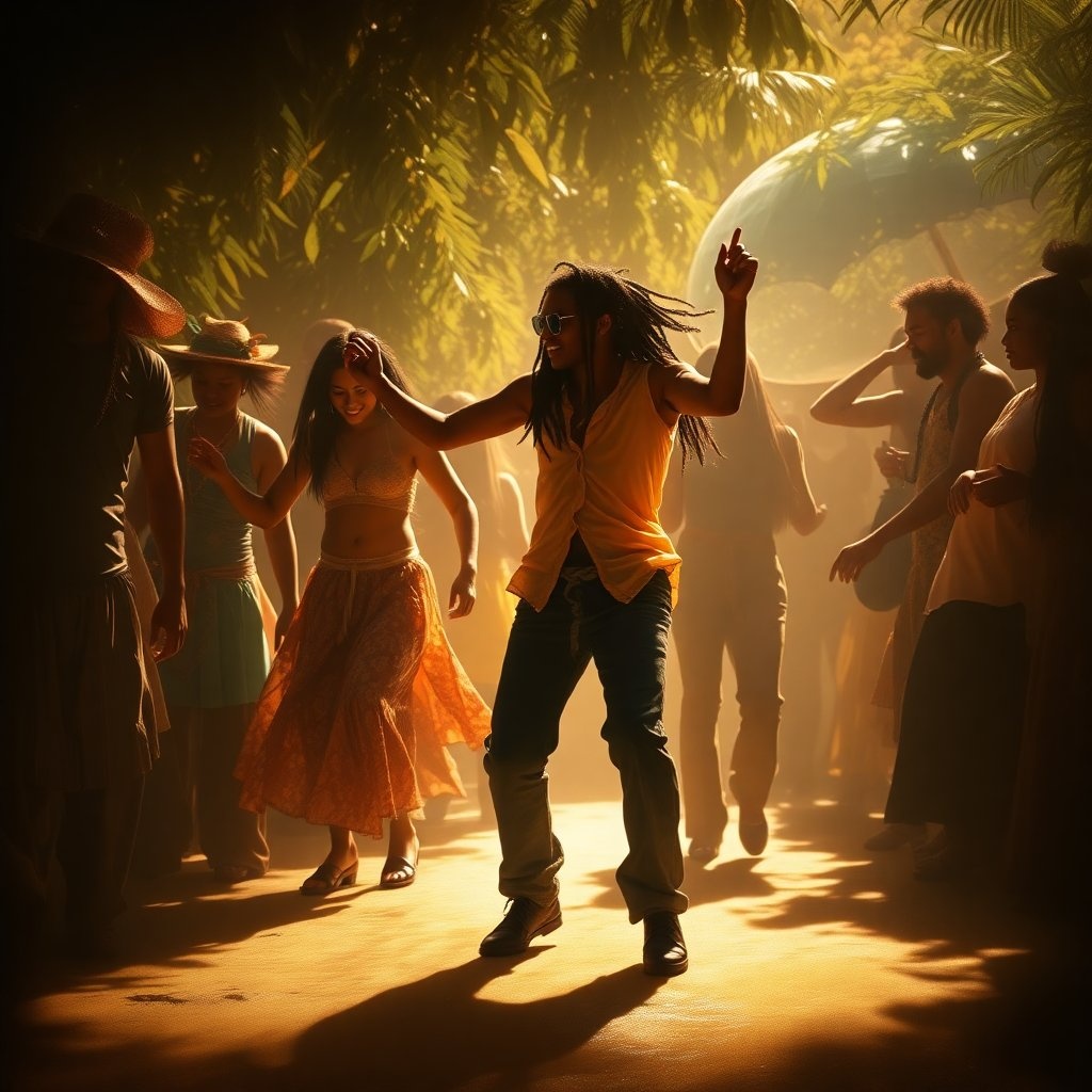 A reggae-pop fusion with authentic Jamaican flair, starting with syncopated guitars, lively offbeat organ stabs, and deep pulsing bass, The verses glide on light percussion, while the chorus introduces brass accents and melodic synths, A danceable groove persists throughout, playful yet polished dub, dub, reggae, dancehall, Add dubby FX, energetic crunk synths, and house-inspired grooves for the chorus