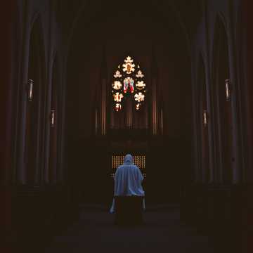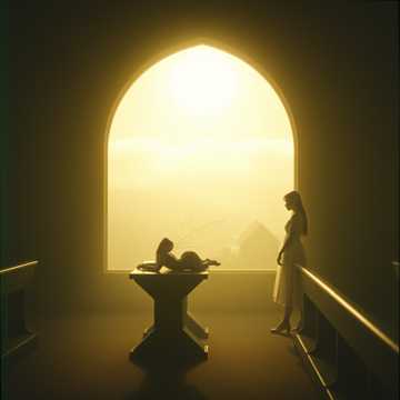 In einer verlassenen alten Kathedrahle, mitten im Nirgendwo, spielt ein Vampir, eine düstere Musik auf einer Orgel, Ein Chor singt, eher poppig, ein Gebet zu Gott