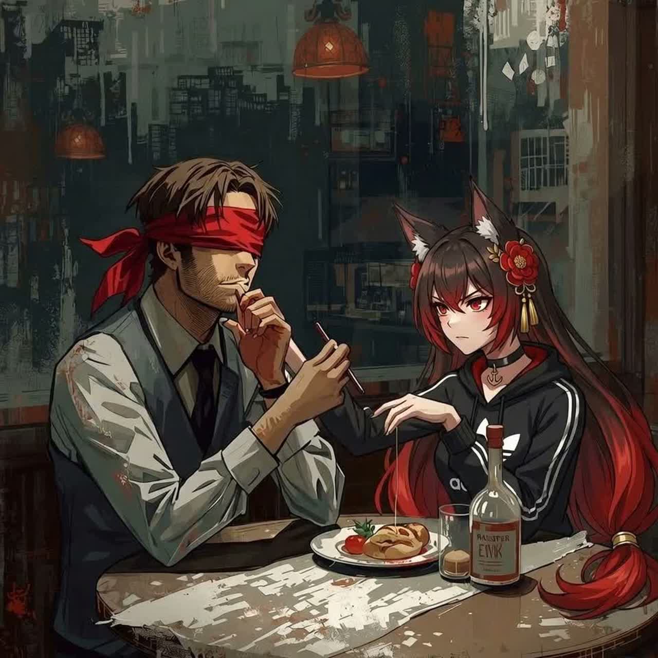 [vocal style: tired deep male vocals, duet]