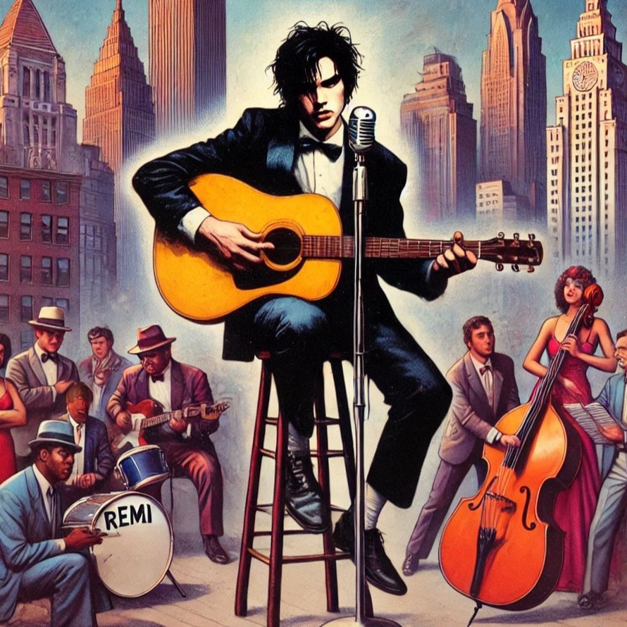 The illbient rockabilly fusion kicks off with jangling acoustic, upright bass slaps, brushed snares, spry handclaps, and spirited acoustic leads, Verses strip to breathy spoken word over dry electric piano, Choruses bloom with reverb-washed group vocals, claps, layered whispers, and swinging drive, Low synth pads and illbient pulses swell tension between sections, building to a droning, shadowy bridge, The outro fades to minimal dry piano and close-mic spoken word, ending on a crisp, tight rockabilly cadence, ‑lo-fi, ‑distortion