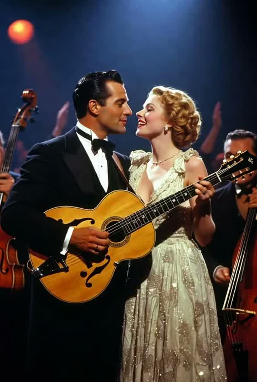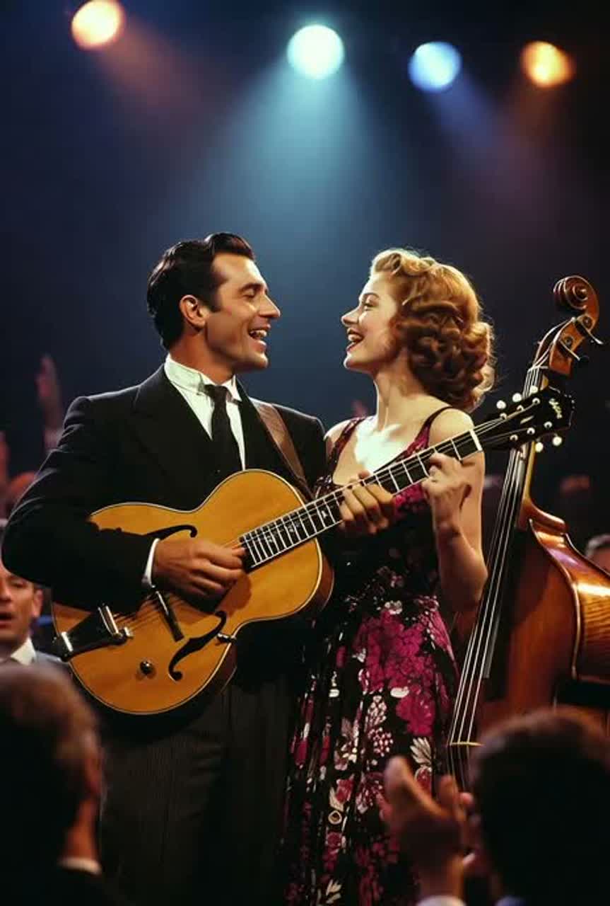 Live concert 1940s pure French Swing Jazz Manouche Gypsy style Django Reinhardt Quintette du Hot Club de France ultra premium latest edition wartime Paris upbeat cheerful infectious dance anthem, male-female duet vocals ultra melismatic authentic French accents warm charming crooner male and playful sassy chanteuse female style, acoustic gypsy jazz guitar manouche picking dominant virtuoso, violin jazz hot melodic soaring, upright bass walking swing rhythm infectious, rhythm guitars chopping staccato, clarinet playful weaving melodic, authentic 1940s French swing production ultra premium emotional depth joy defiance love dancing viral international, breathing audible realistic vocal runs ultra melismatic French romantic endings, crowd clapping swaying dancing joyful, focus gypsy guitar violin clarinet bass authentic 40s French manouche swing joy love dancing, ‑rock, ‑rock ballad, ‑modern elements, ‑EDM synths auto-tune electric guitars, ‑no modern elements, ‑EDM synths auto-tune electric guitars heavy rock