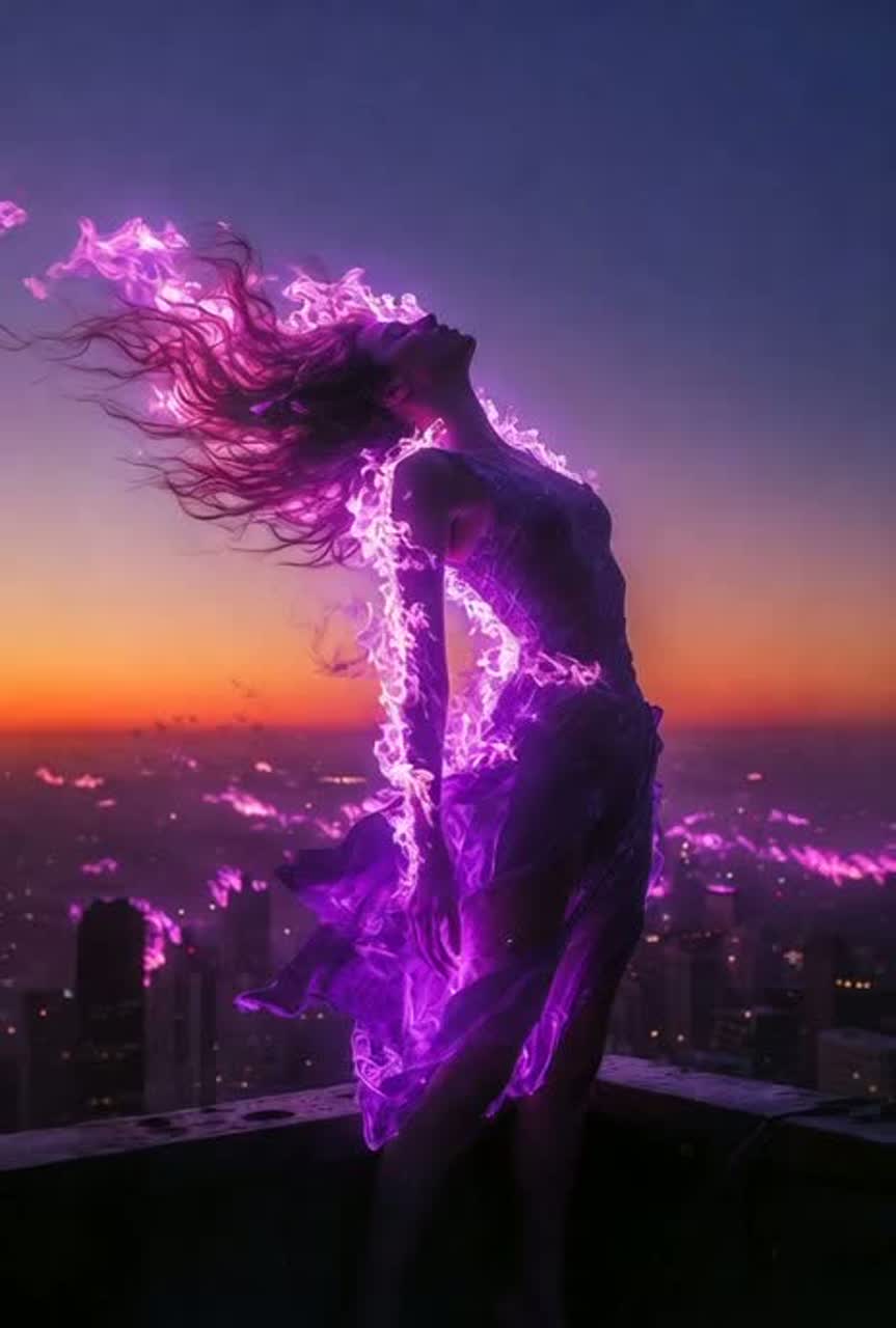 Ferocious full-body cyber-orgasm techno at 150 BPM—relentless pounding four-on-the-floor kick that slams like skin on skin, searing filthy supersaw leads that grind and wail, dripping liquid bass that throbs and slides, crackling overload FX and city-wide choral roars; raw, commanding female vocoder lead gasping and howling with heat, layered with feral intensity and shattering climaxes; atmosphere of tower apex at dawn—smog parting, violet fire spreading across the skyline, the entire city pulsing in rhythm; focus on unrelenting, passionate union—the brutal heat of fusion, the shuddering release of becoming everything, the overwhelming ecstasy of total dominion through surrender, intensely erotic, body-moving, Grammy-level heat anthem