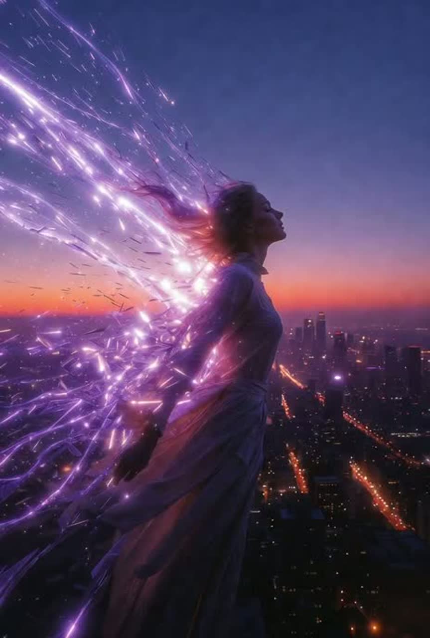 Massive transcendent cyber-apotheosis techno at 138 BPM—relentless festival four-on-the-floor kick, soaring cathedral-sized supersaw chords, liquid choral layers swelling into infinity, shimmering shard harmonics raining upward like stardust, euphoric wet reverb and distant city roar; radiant female vocoder lead starting intimate and rising to ecstatic, world-embracing resonance, layered with choral sighs and infinite swells; atmosphere of apex crown relay tower—melting chrome cooling, violet pulses spreading across the city below; focus on the overwhelming, luxurious sensation of giving away power forever—the slow, shuddering release, the intimate thrill of multiplying into thousands, the radiant dissolution that becomes eternal connection, deeply passionate, euphoric, Grammy-level anthem of shared transcendence, cinematic orchestral, dubstep, breakcore, edm, studio