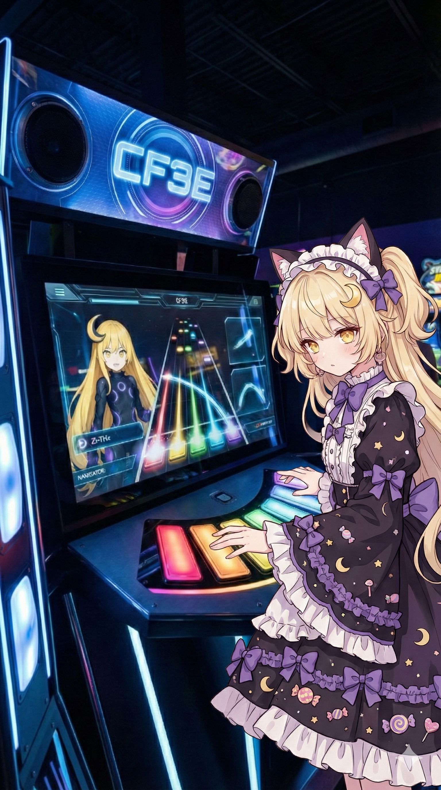 Gothic Lolita, cyberpunk, whimsical, chaotic, energetic, catchy, chocolate, sweet, cute, cheeky, cat, Soundstage: