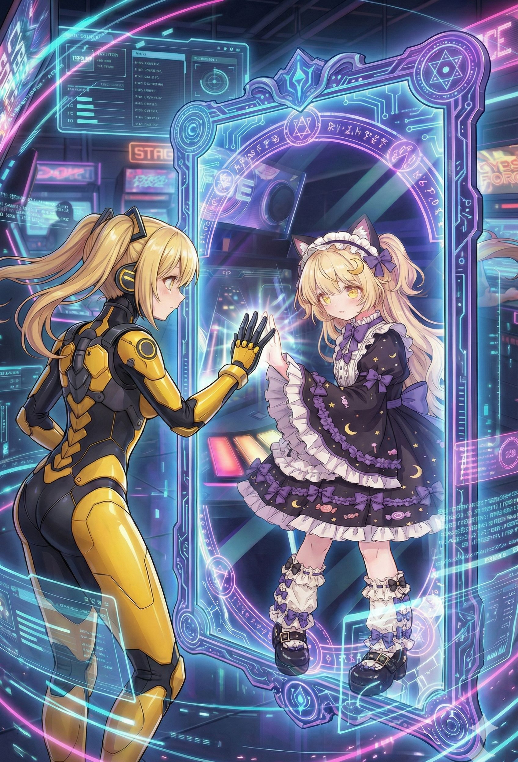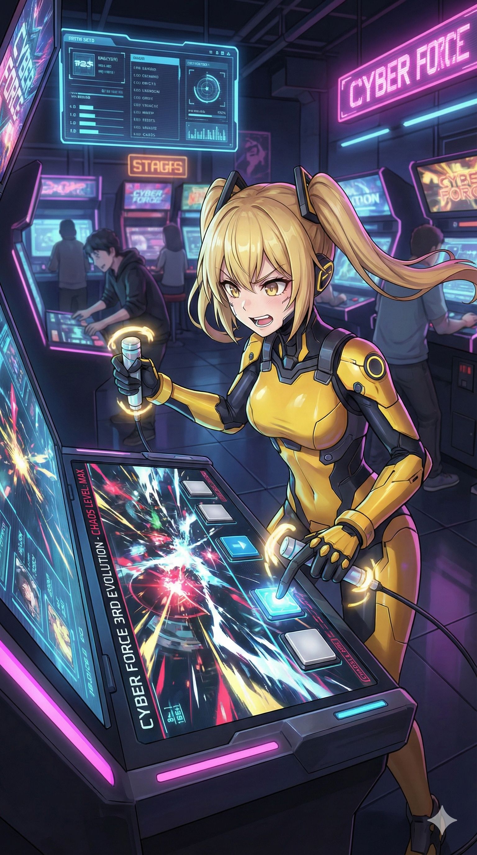 J-Pop, Anime Song, High Tension Female Vocals, Playful and Chaotic Vocals, Arcade Cyberpunk Techno, Hi-Tech Psytrance, Sega-style FM Synth Lead, Aggressive Complex Breakbeats, Glitch Core, Speedcore elements, Chaotic and rapid melody changes in chorus, Futuristic Sound Design, Boss Battle Music theme, High BPM, ‑J-Pop, ‑Anime Song, ‑High Tension Female Vocals, ‑Playful and Chaotic Vocals, ‑Arcade Cyberpunk Techno, ‑Hi-Tech Psytrance, ‑Sega-style FM Synth Lead, ‑Aggressive Complex Breakbeats, ‑Glitch Core, ‑Speedcore elements, ‑Chaotic and rapid melody changes in chorus, ‑Futuristic Sound Design, ‑Boss Battle Music theme, ‑High BPM