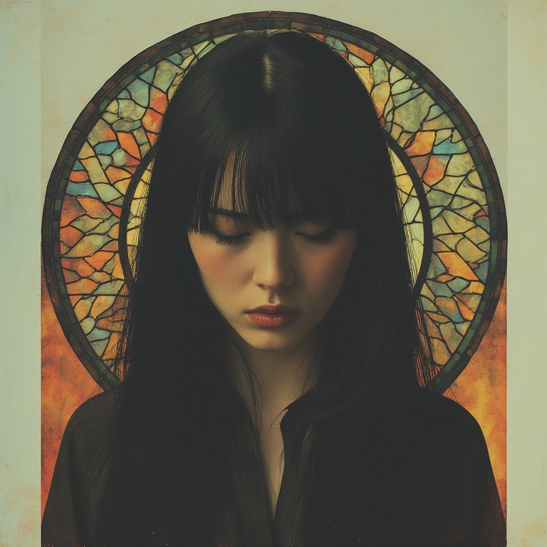 This melancholic alternative grunge and electro-pop fusion starts with lo-fi crackle, warped synth pads, and slow, murky chords, Soft female vocals, delicately fractured with light distortion, float above, The chorus bursts into washed-out guitars, fragmented beats, and rhythmic glitches—balancing gritty imperfection with glossy, digital textures, blurring the line where analog soul meets artificial beauty