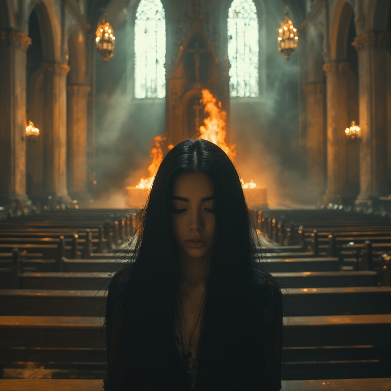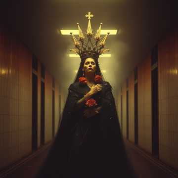 Cyberpunk Gospel, Dark Ethereal Synthwave, Glitch Electronica, Cinematic, Gregorian Chant influence, Haunting female vocals, Industrial beats mixed with soaring choir pads, Intense and atmospheric