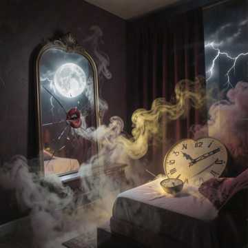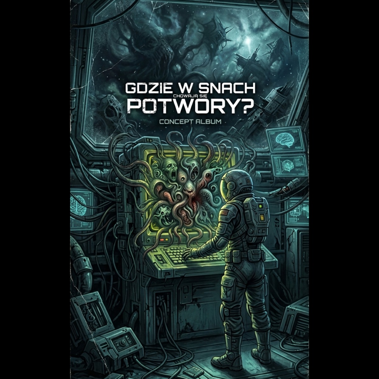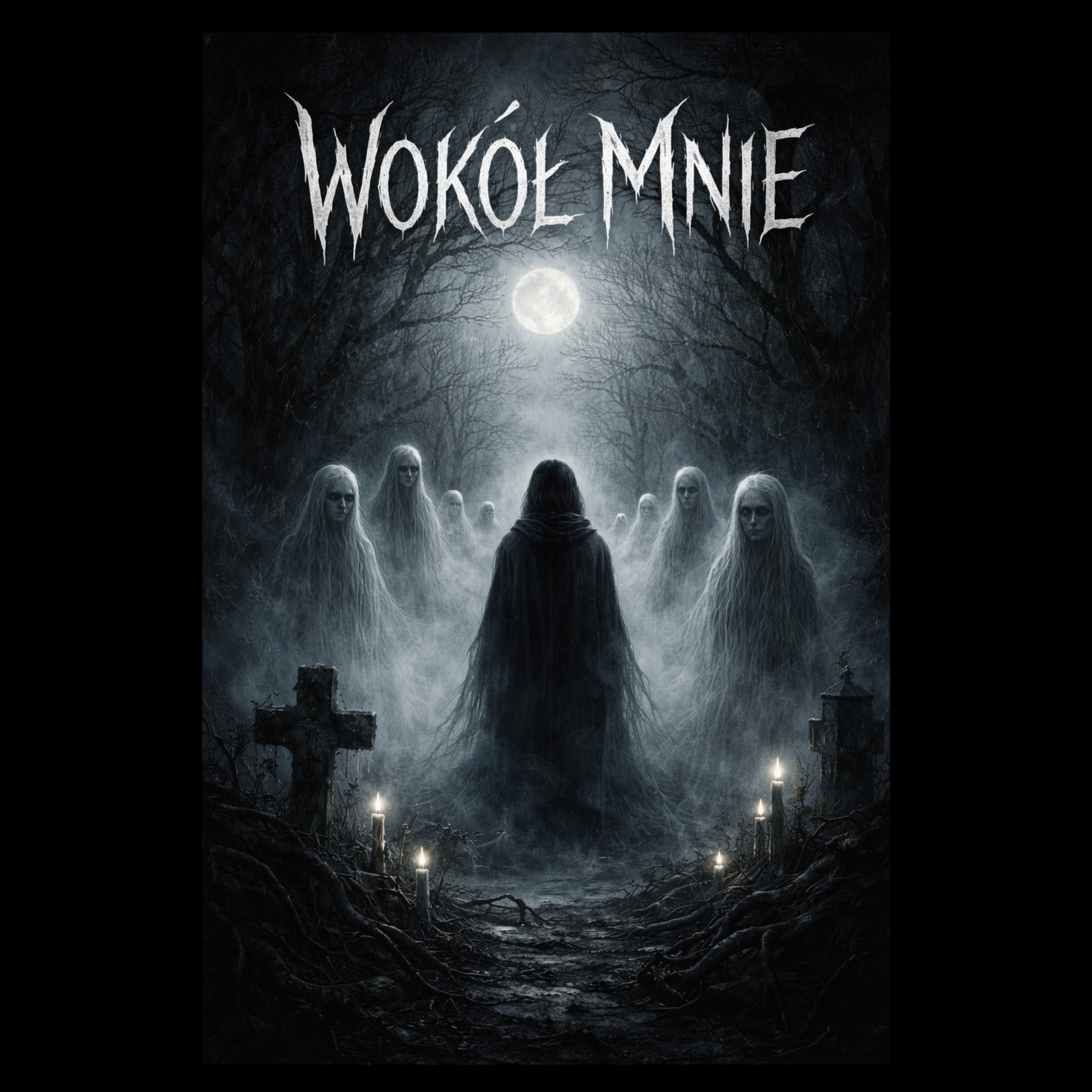 Darkwave, Industrial, Horror Synth, Polish vocals, male or female haunting voice, cinematic, eerie atmosphere, dynamic emotional shifts, whispered vocals, distorted layers, deep bass pulses, analog synths, reverb-heavy, unsettling, psychological horror tone, slow build tension, explosive choruses, haunting melodies, glitch textures, ambient horror, Polish lyrics, smooth phrasing, natural vocal flow, clear articulation