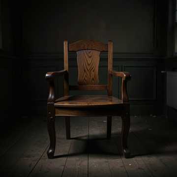 pure dark ambient horror, industrial drone, cursed mahogany chair possession, Graham Masterton atmosphere, no drums, deep low rumbles, eerie whispers, slow evolving dread, Atrium Carceri + Lustmord style