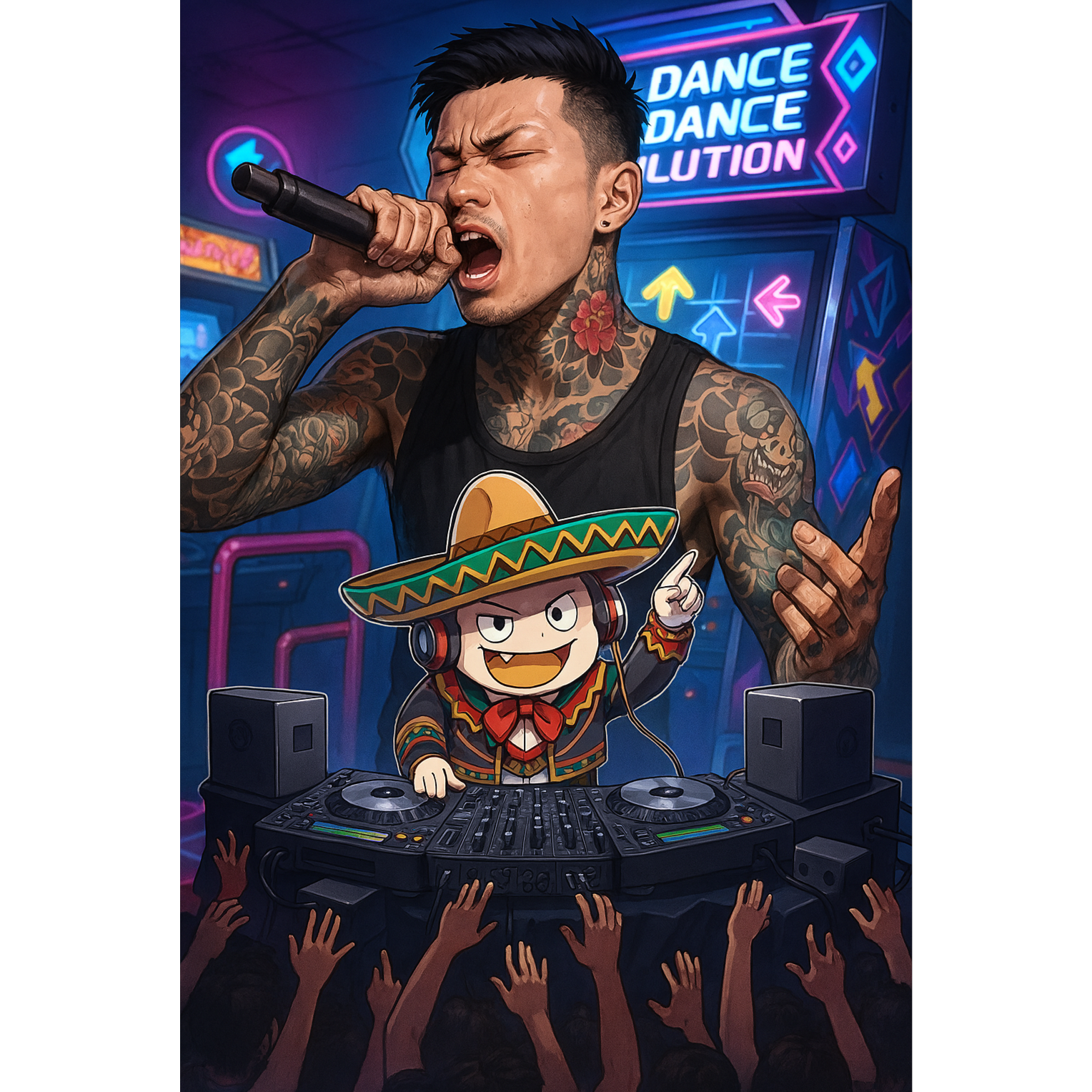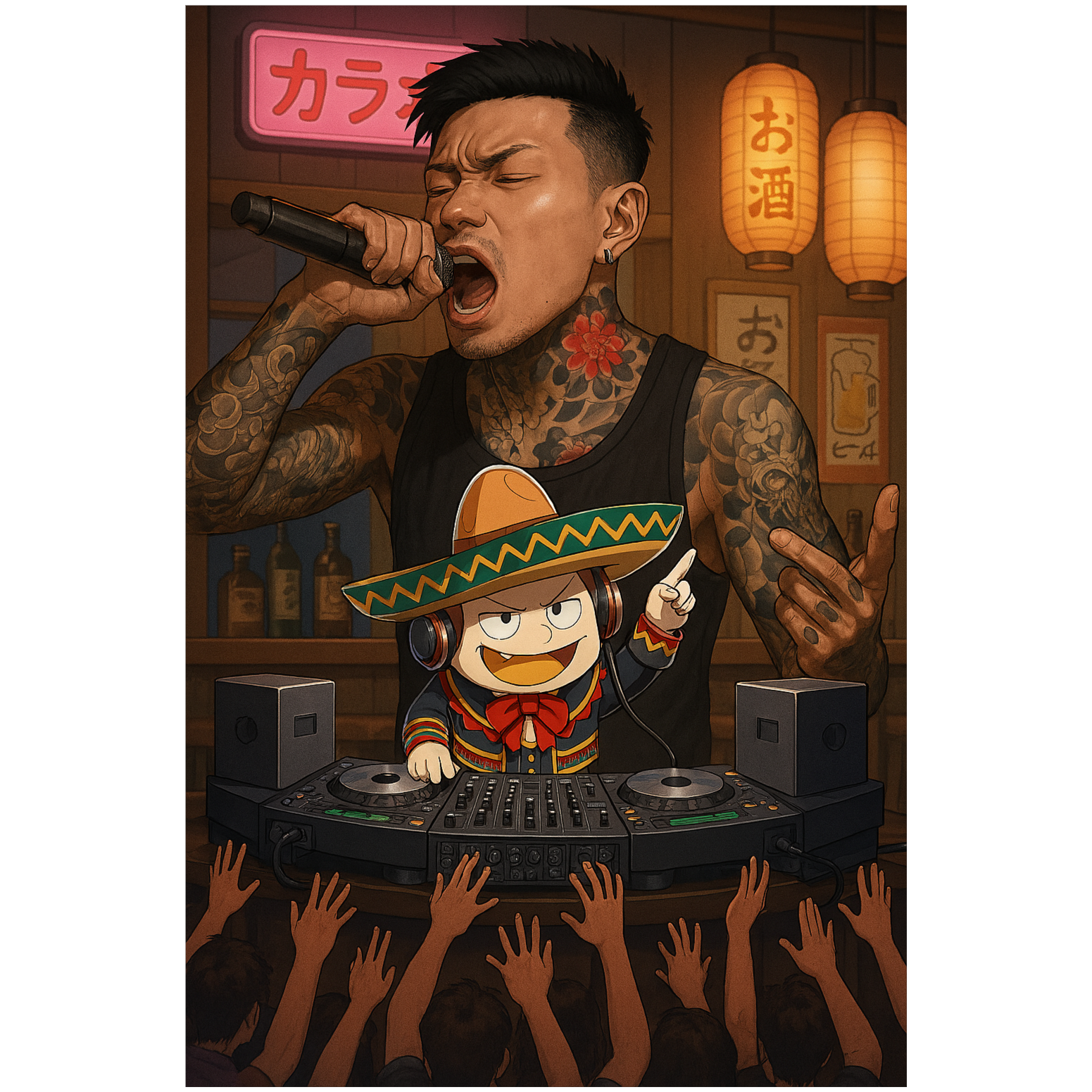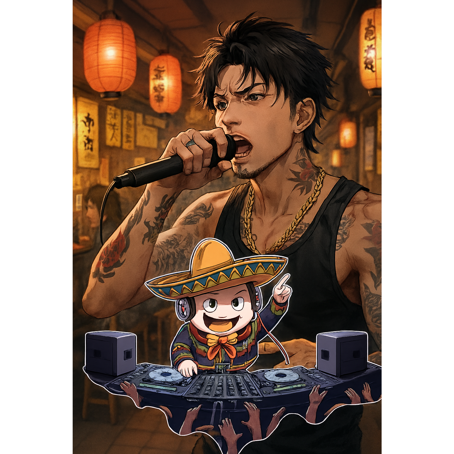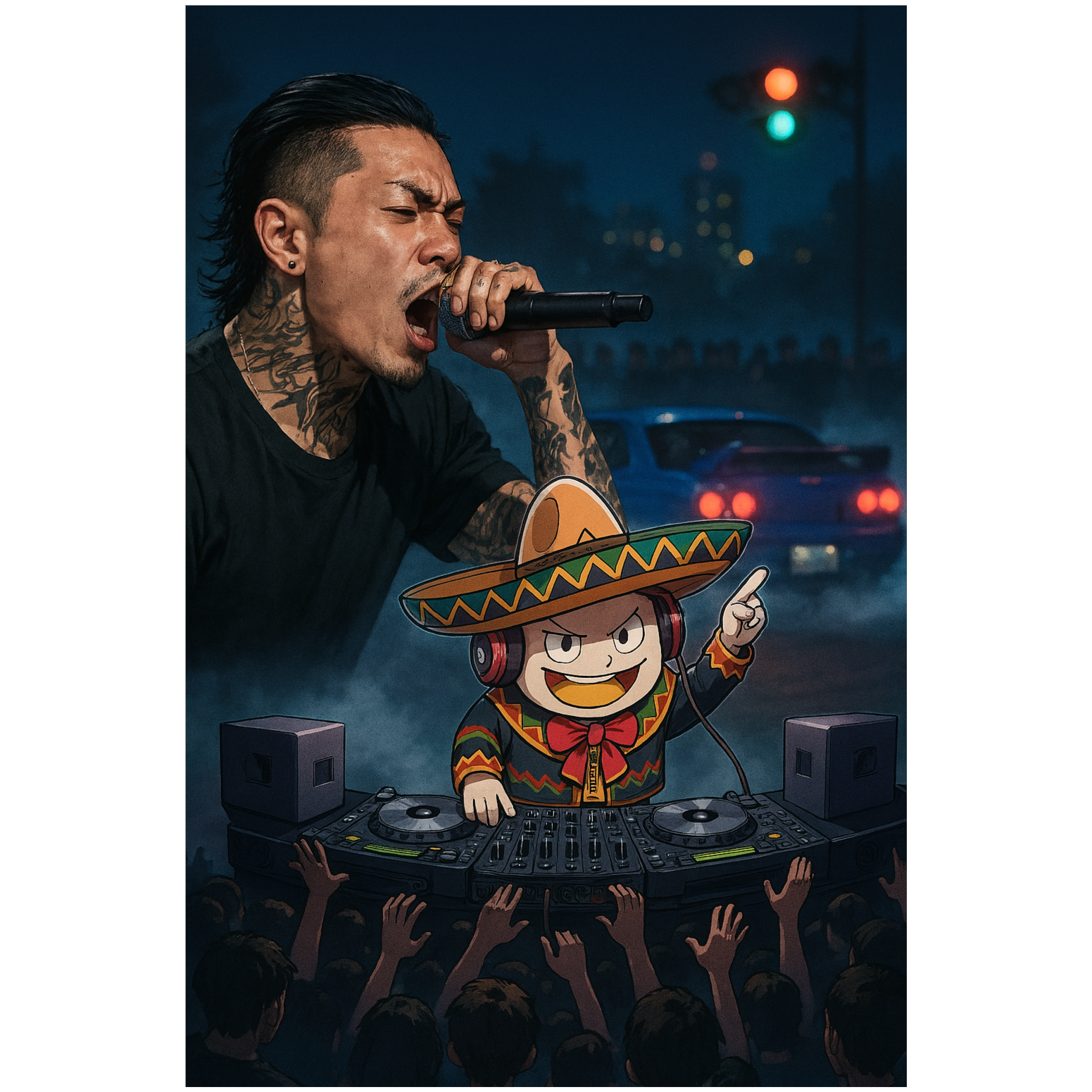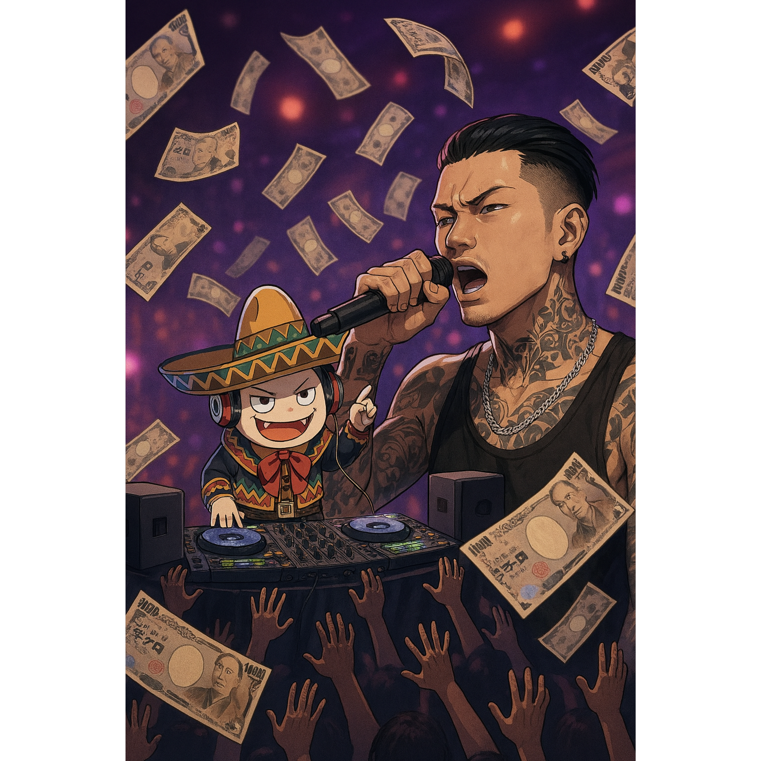 A modern Japanese rap track built on deep 808s, crisp hi-hats, and punchy trap rhythms, Percussive, electro-inspired synths layer with neon-bright melodic stabs for a vaporwave edge, Verses swap between sultry vocals and agile rap, maintaining a vibrant, club-driven energy throughout