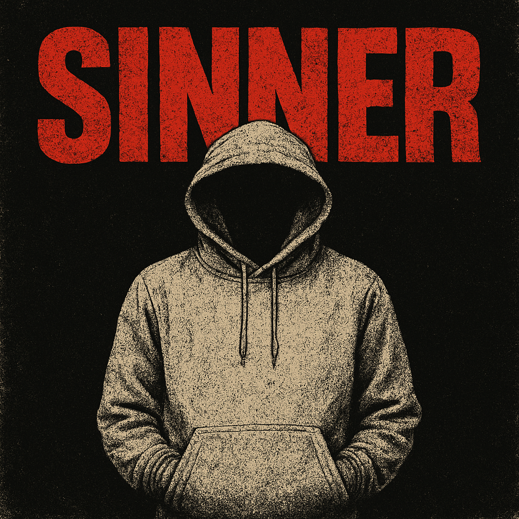 Hardcore punk song with aggressive low-end focus and heavy down-tuned guitars, Fast-paced 2-beat rhythm, intense distorted bass, and powerful kick drums, Vocals are mostly English with occasional Japanese shouts, Screamed and shouted vocal delivery with raw energy, The mood is dark, defiant, and emotionally explosive, Influences: The Mad Capsule Markets, early Slipknot, and Knocked Loose, BPM 180-200, Theme: being a sinner, rejecting fake morality, screaming one’s truth, with electronic glitch elements and industrial textures, add growl/harsh vocals and breakdowns, dirty voice