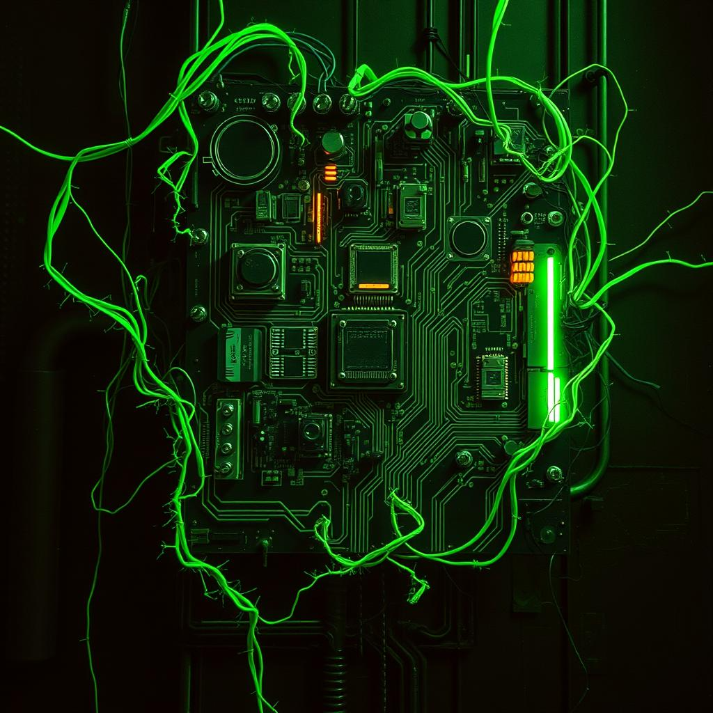 A brutal digital hardcore track at BPM 200, combining glitchy industrial noise with raw band energy, Features pounding heavy kick drums, aggressive distorted guitars, chaotic overdriven basslines, and a fusion of shouted vocals and distorted screams, Explosive and relentless, the song captures the defiance of a creature born to break the surface—a fish out of code, rebelling against the synthetic system, Inspired by Atari Teenage Riot and The Mad Capsule Markets in a post-human soundscape